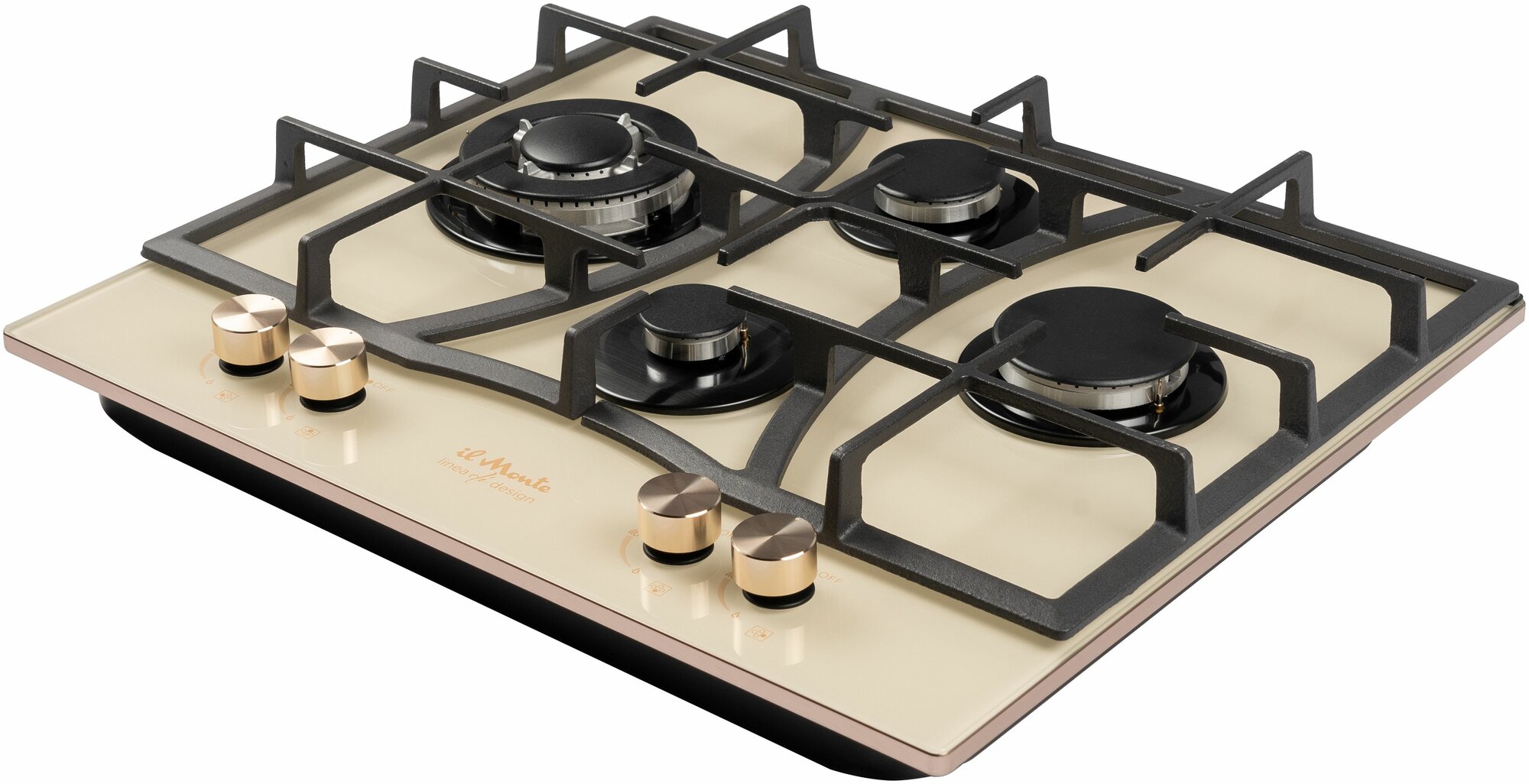 Варочная панель газовая, 45 см, Чугунные решетки, Закаленное стекло, il Monte BH-401-G