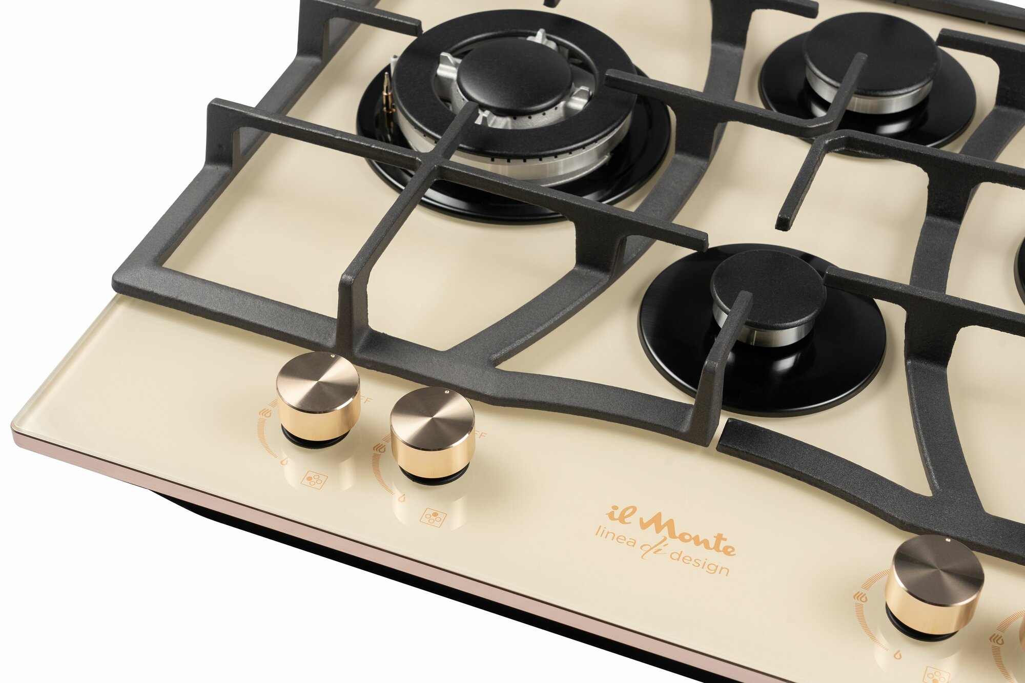 Варочная панель газовая, 60 см, Premium, Газ-контроль, Автоподжиг, Турбо-конфорка WOK, Закаленное стекло, il Monte Linea Design BH-677D-LUXE