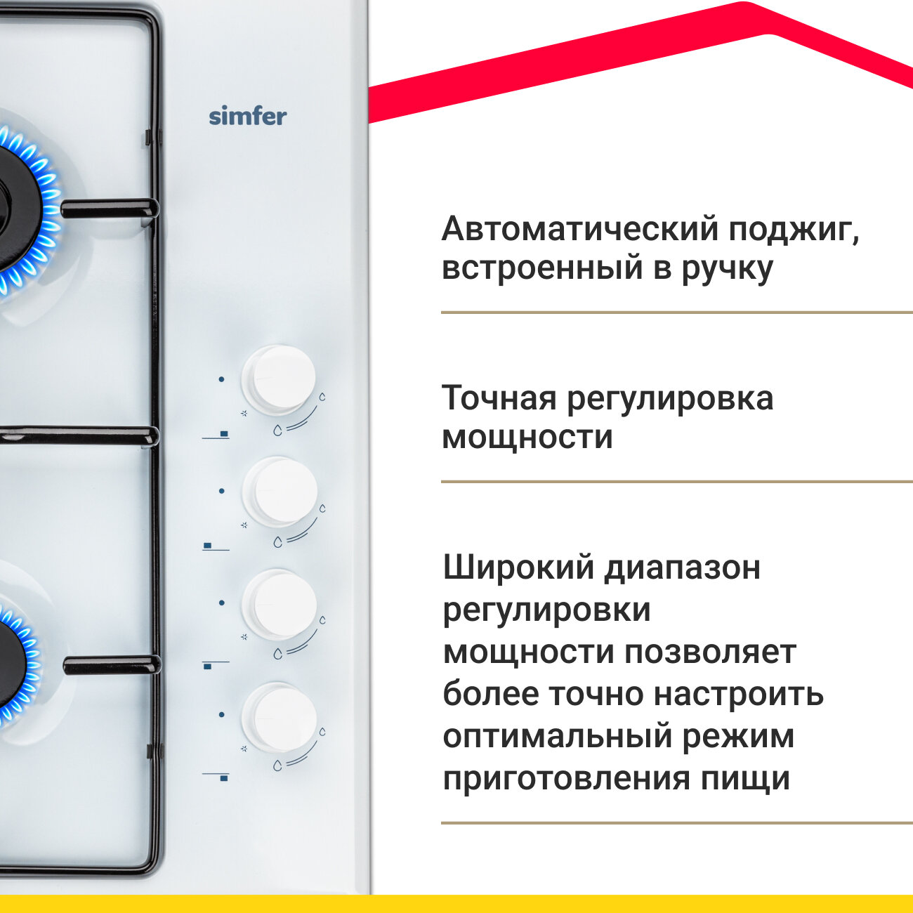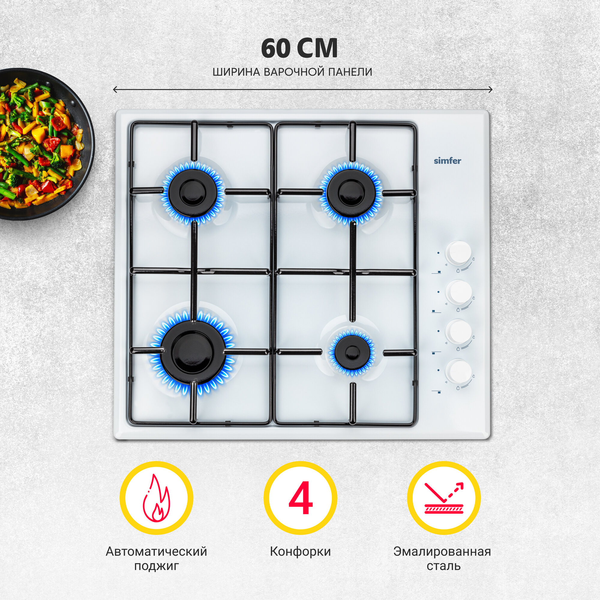 Газовая варочная панель Simfer H60Q40W440 серия Comfort, с автоподжигом, белая информация:
