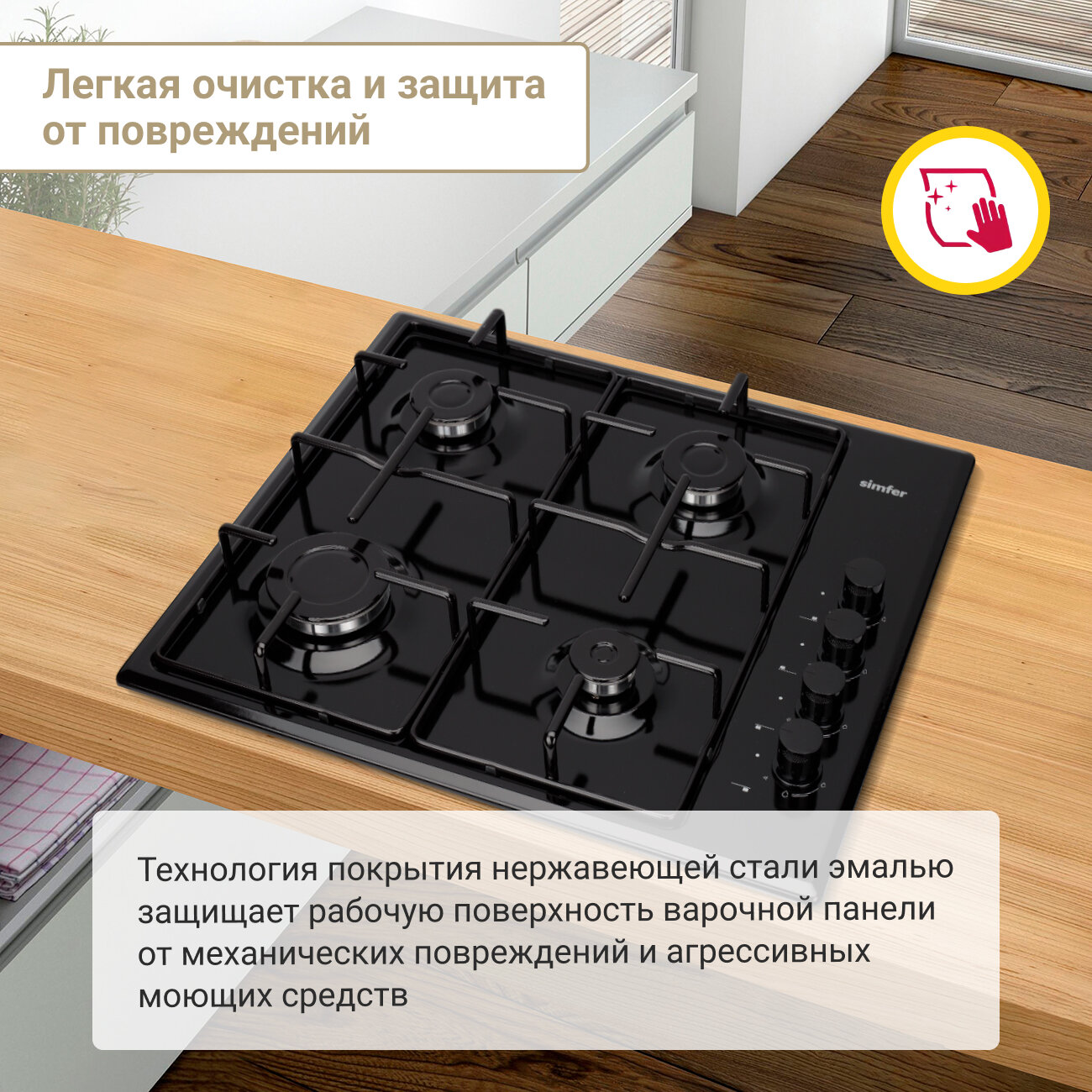 Газовая варочная панель Simfer H60Q40B440 серия Comfort, с автоподжигом, черная информация:
