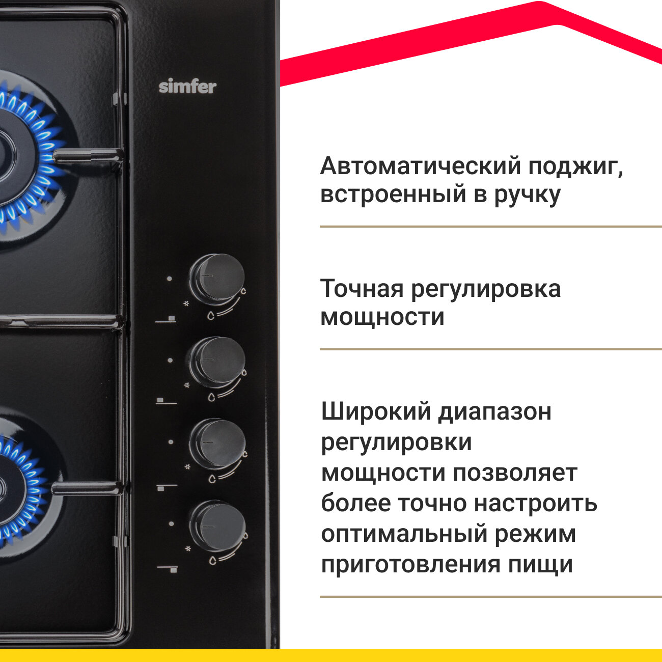 Отзывы на Газовая варочная панель Simfer H60Q40B440 серия Comfort, с автоподжигом, черная