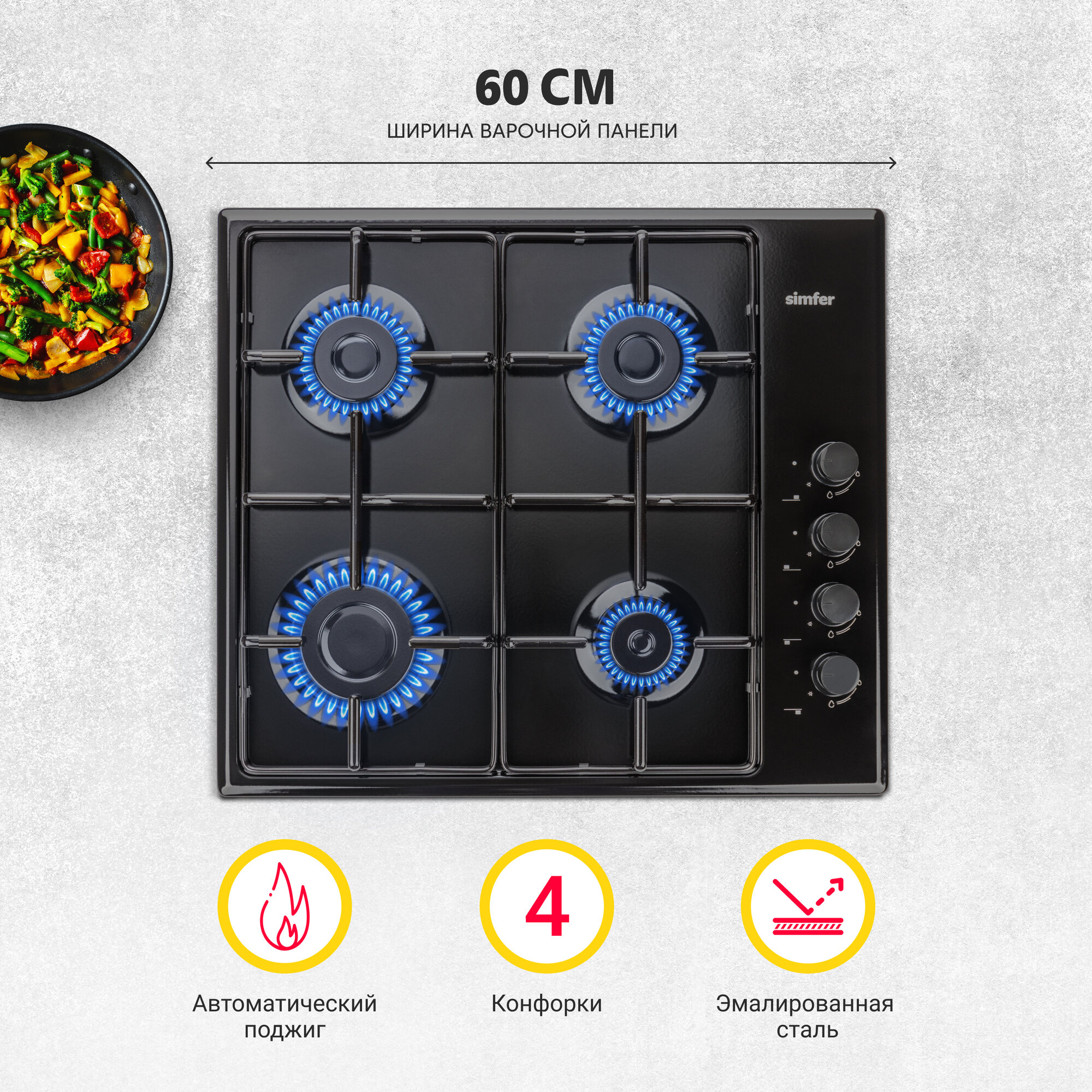 10 цен на Газовая варочная панель Simfer H60Q40B440 серия Comfort, с автоподжигом, черная