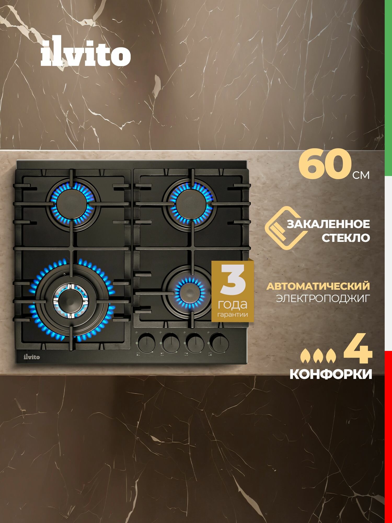 Отзывы на Газовая варочная панель ILVITO IPG FABIANA 6GW NB, 60 см, WOK-конфорка, автоматический розжиг