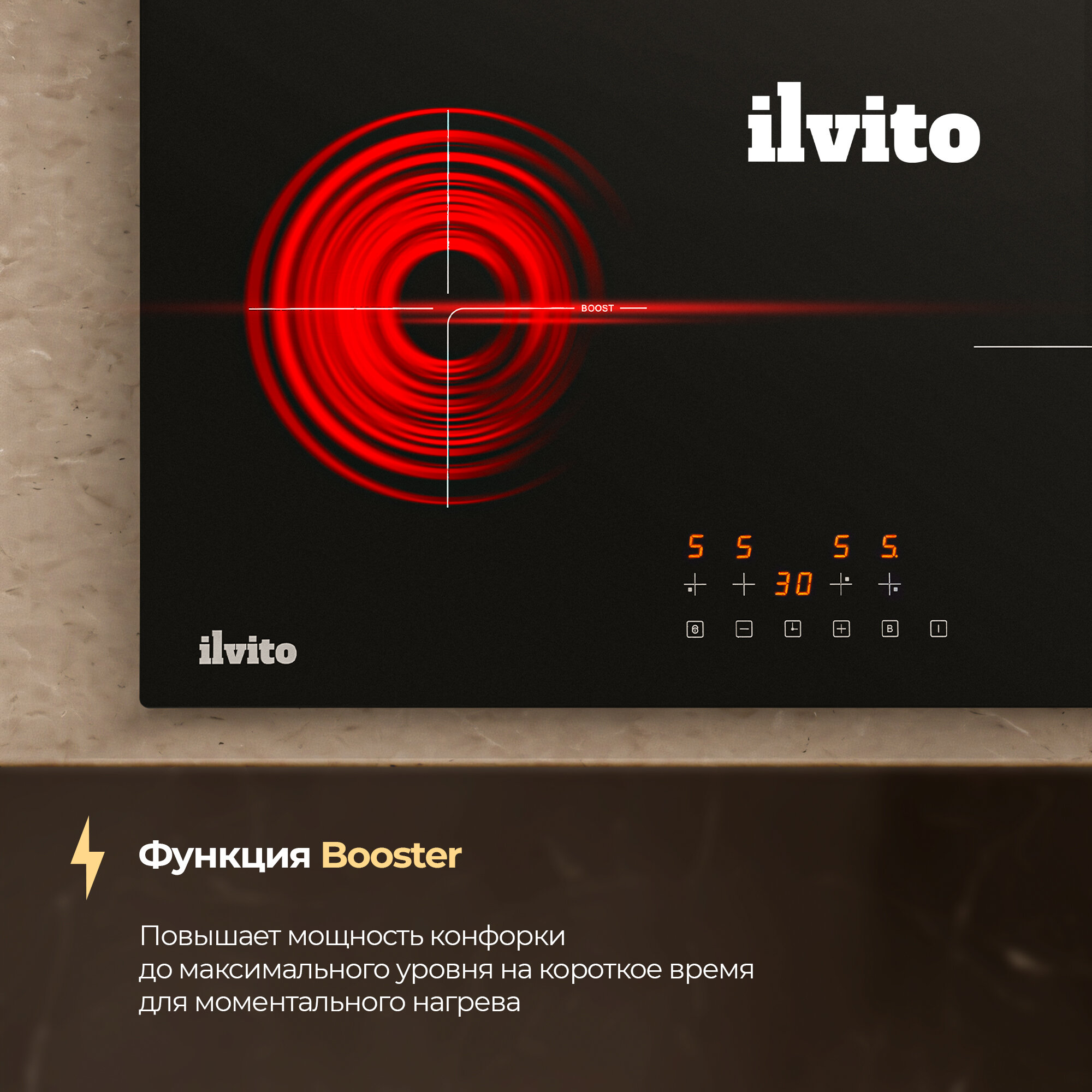 Индукционная варочная поверхность ILVITO IPI ACORO 610 H, 60 см, 9 режимов нагрева, Функция Booster 11 956 ₽