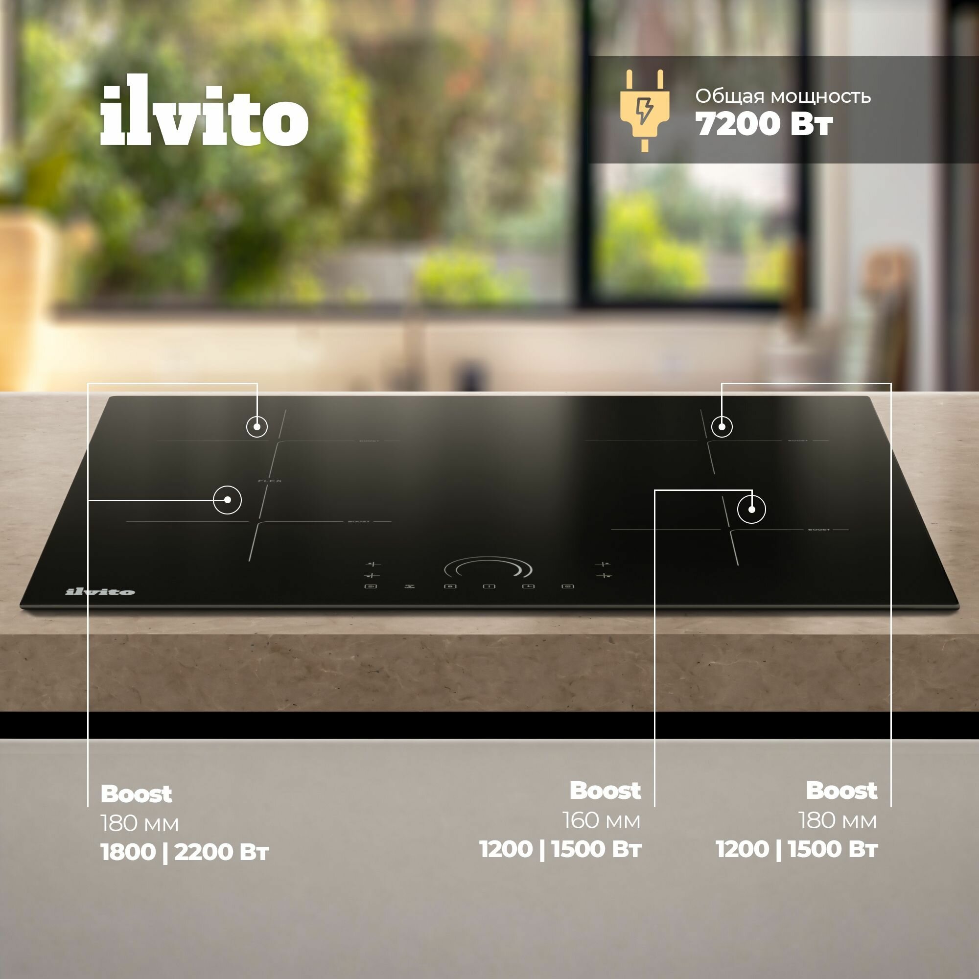 Индукционная варочная поверхность ILVITO IPI ACORO 641 H,60 см, 9 режимов нагрева, Функция Booster информация:
