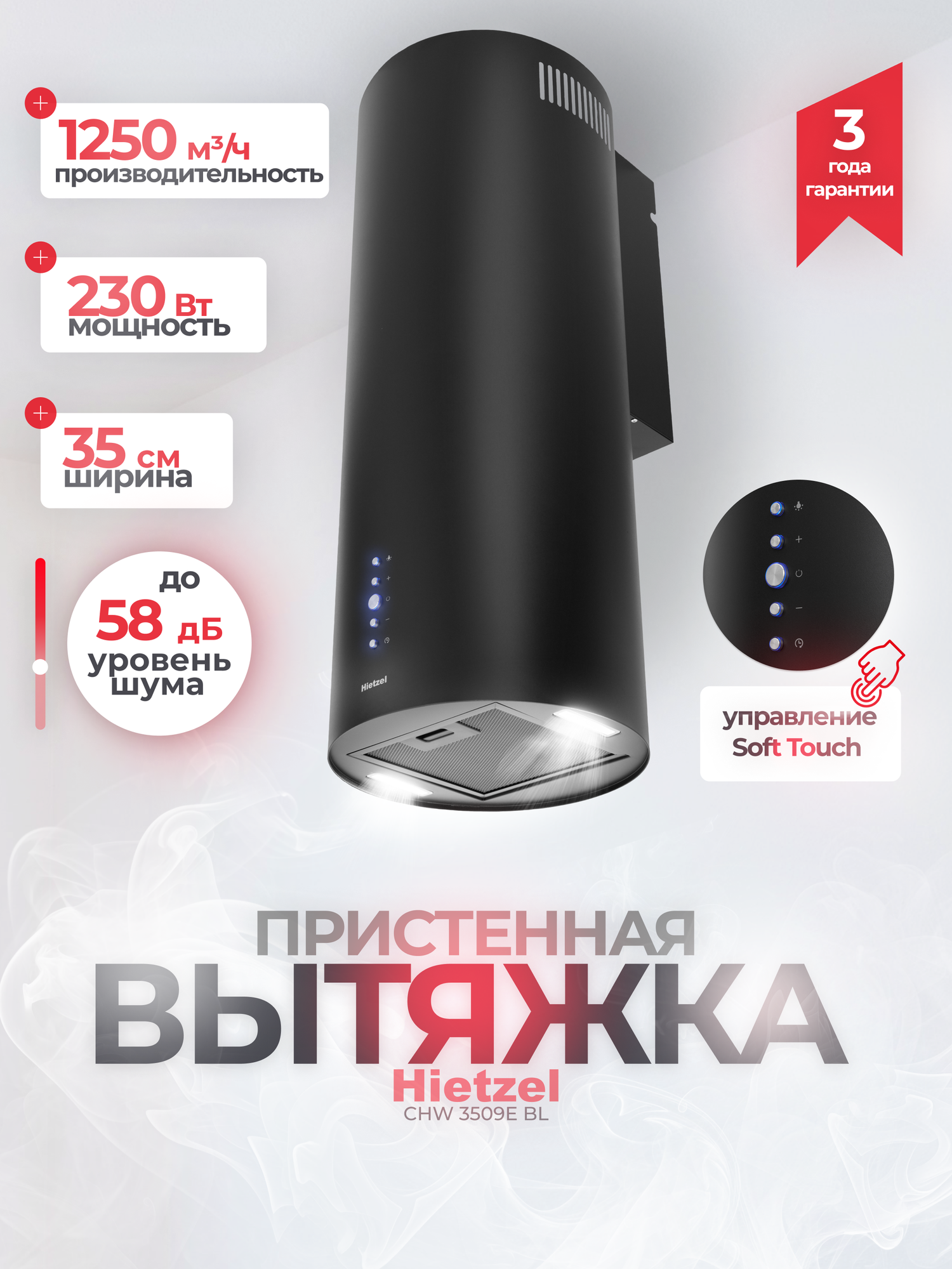 Вытяжка цилиндрическая для кухни черная Hietzel CHW 3509E BL информация: