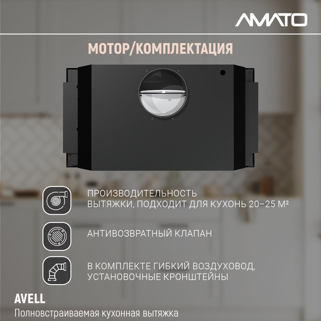 Вытяжка встраиваемая AVELL, полновстраиваемая, черная, 135 Вт информация: