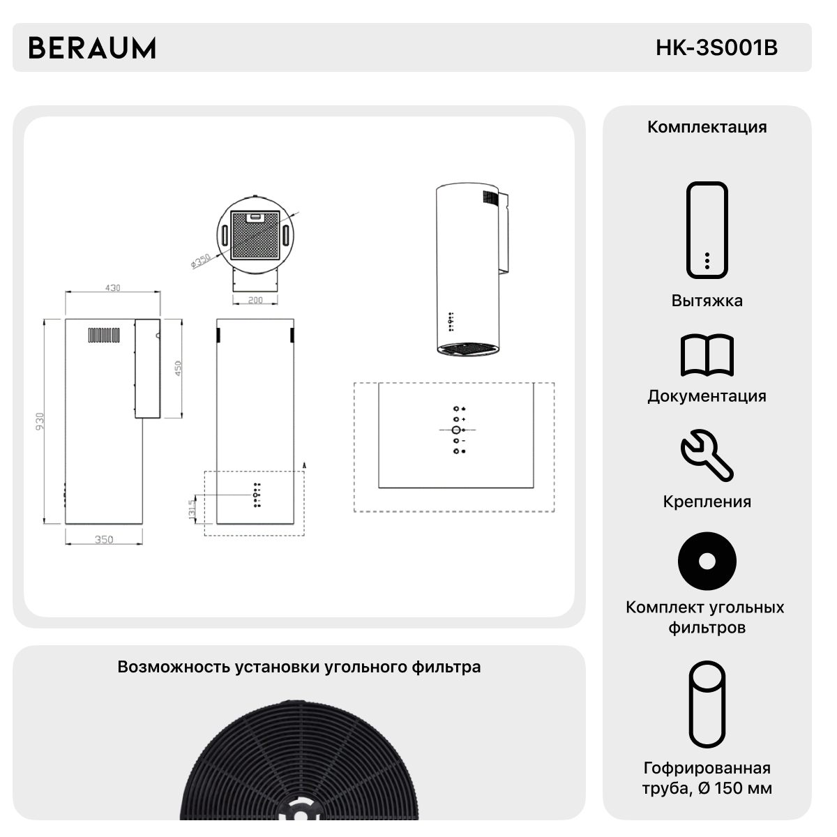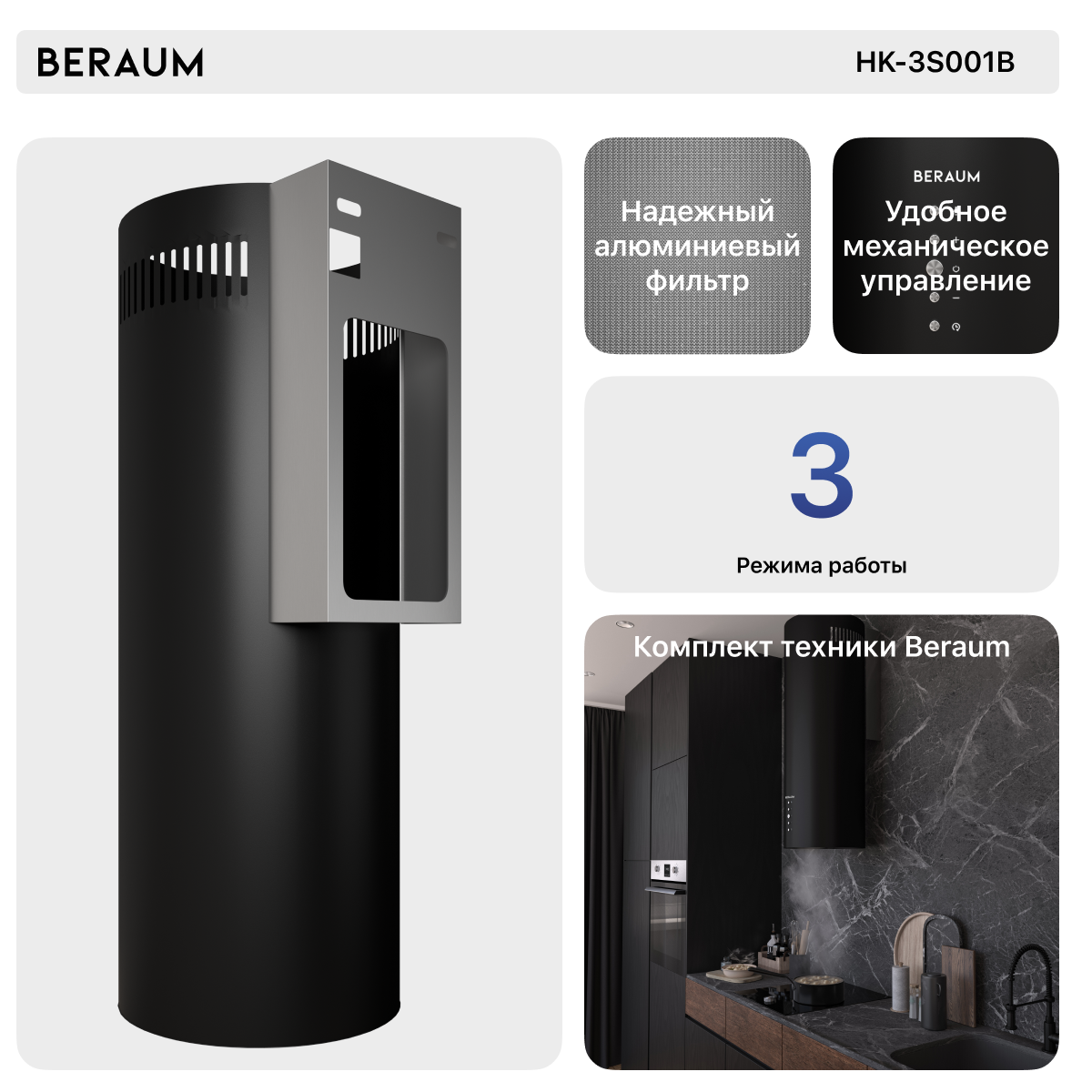 Вытяжка кухонная цилиндрическая Beraum HK-3S001B, пристенная, 750 м3/ч информация:
