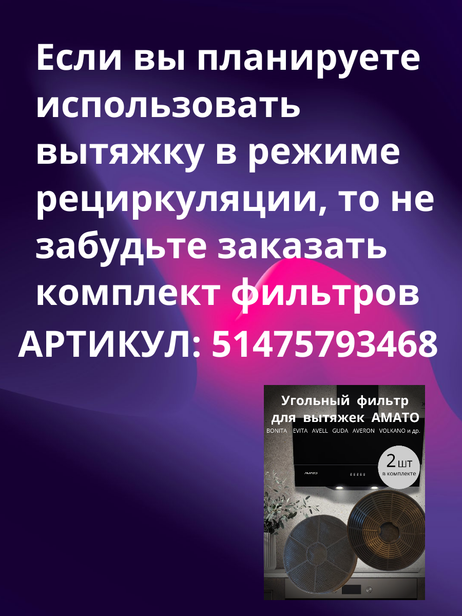 Вытяжка амато BONITA, наклонная, 60 см, 3 скорости, периметрическая система, черная, 135 Вт