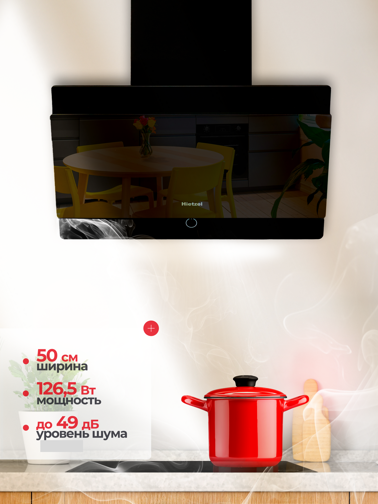 Отзывы на Наклонная вытяжка для кухни черная 50 см Hietzel CHV 5029G BL сенсорная, управление жестами