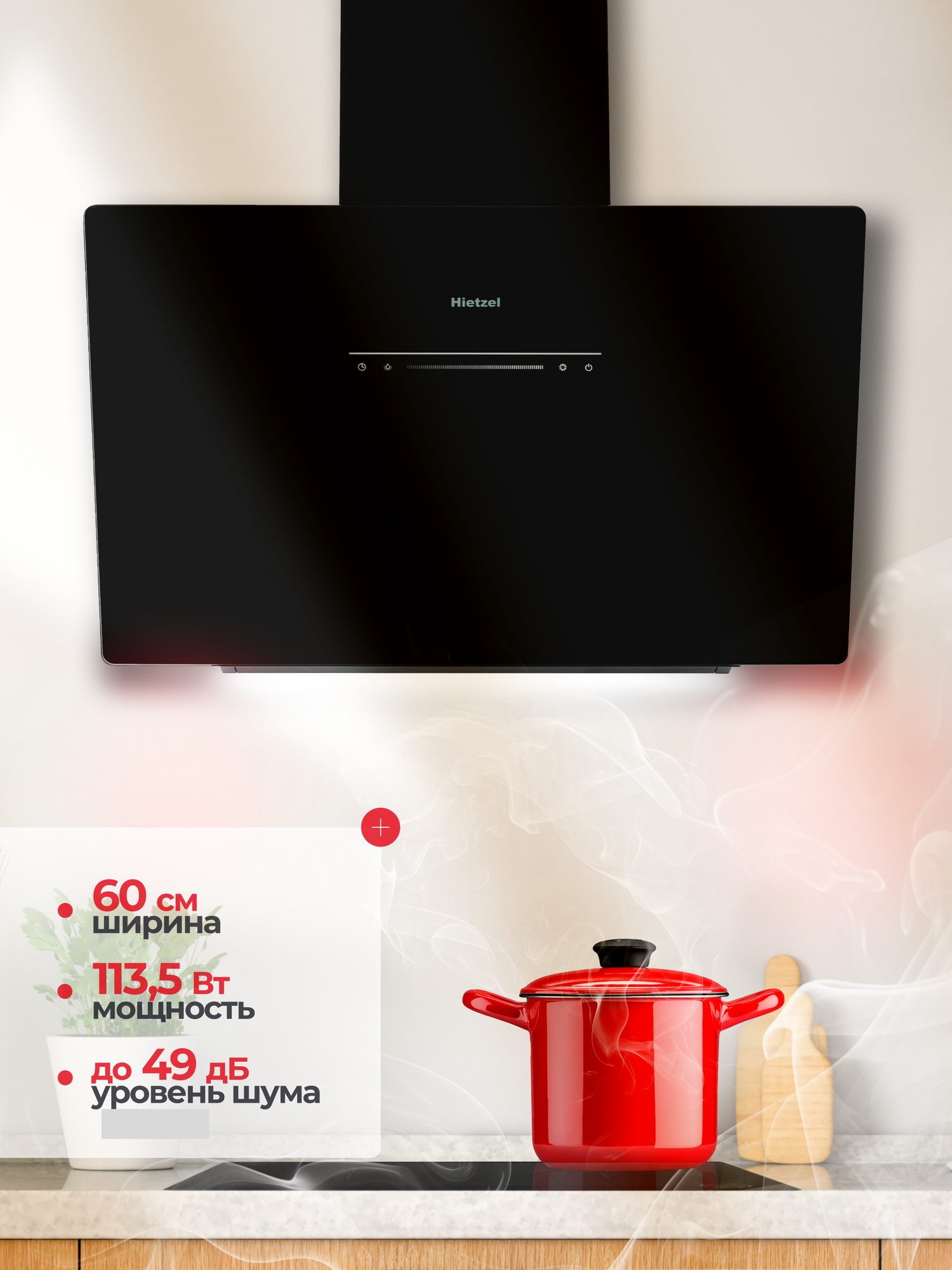 Отзывы на Наклонная вытяжка для кухни черная 60 см Hietzel CHV 6022S BL слайдерная, управление жестами