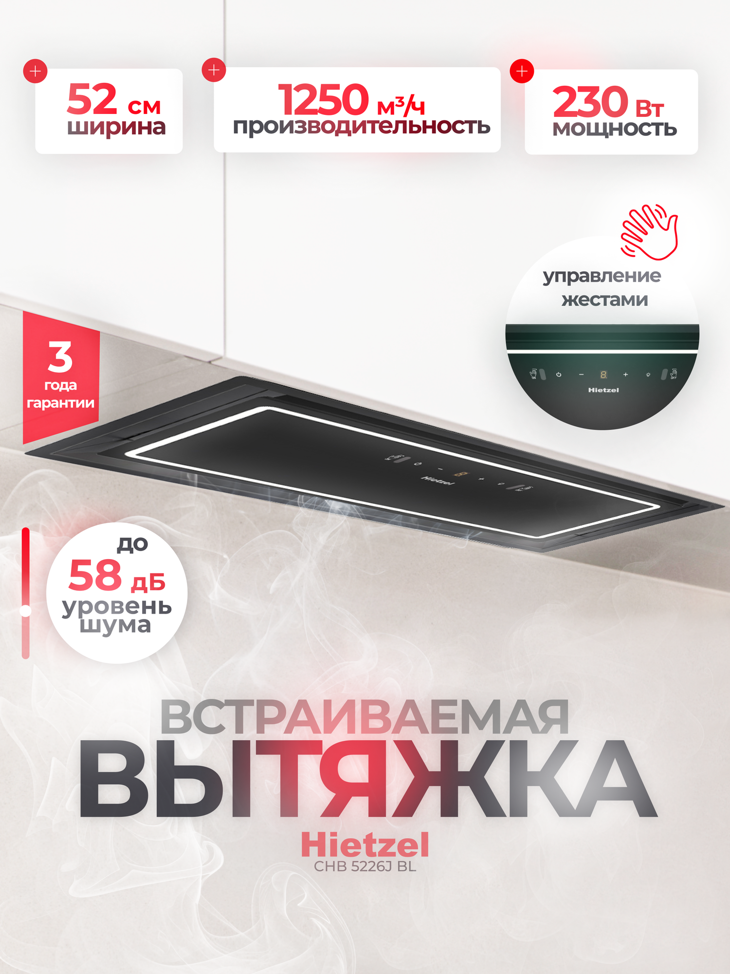Встраиваемая вытяжка для кухни черная Hietzel CHB 5226J BL информация: