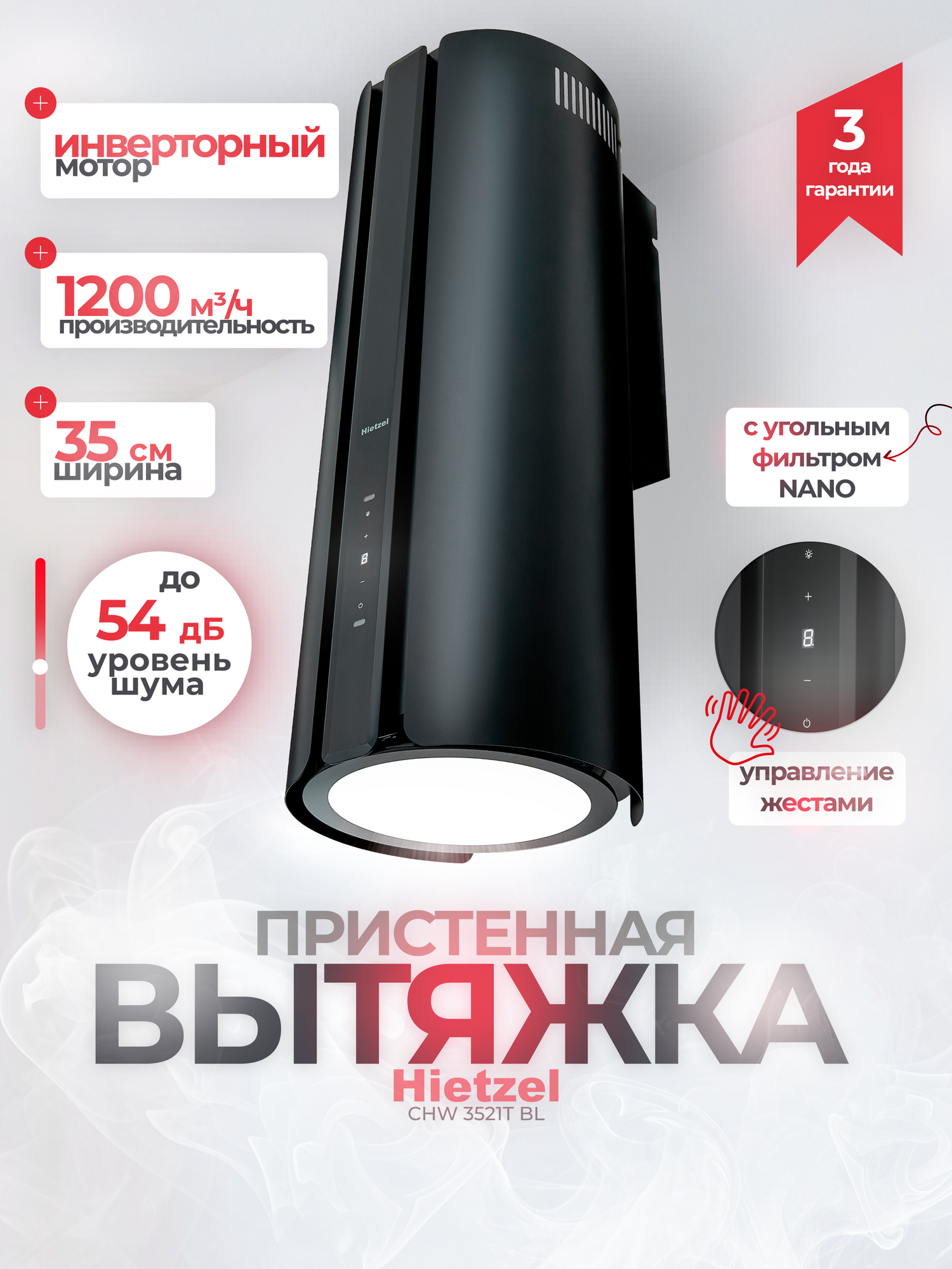 10 цен на Вытяжка цилиндрическая для кухни черная Hietzel CHW 3521T BL с инверторным двигателем