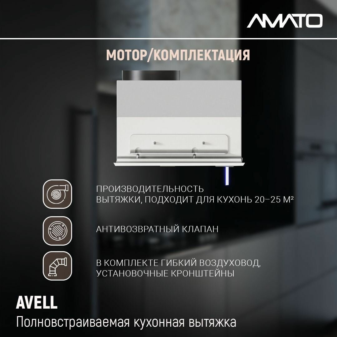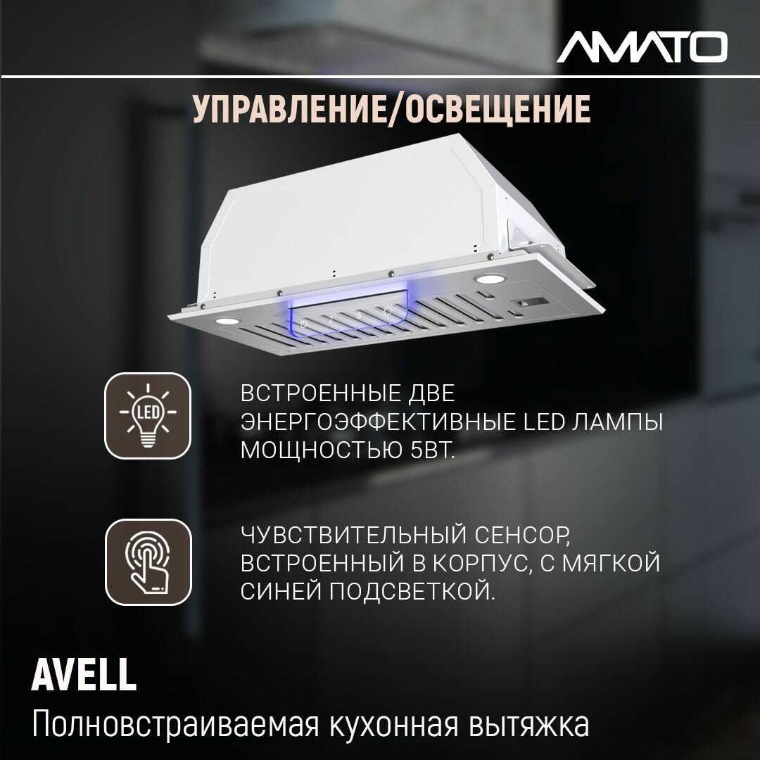 Вытяжка встраиваемая AVELL с сенсорным управлением, встраиваемая, белая 135Вт информация: