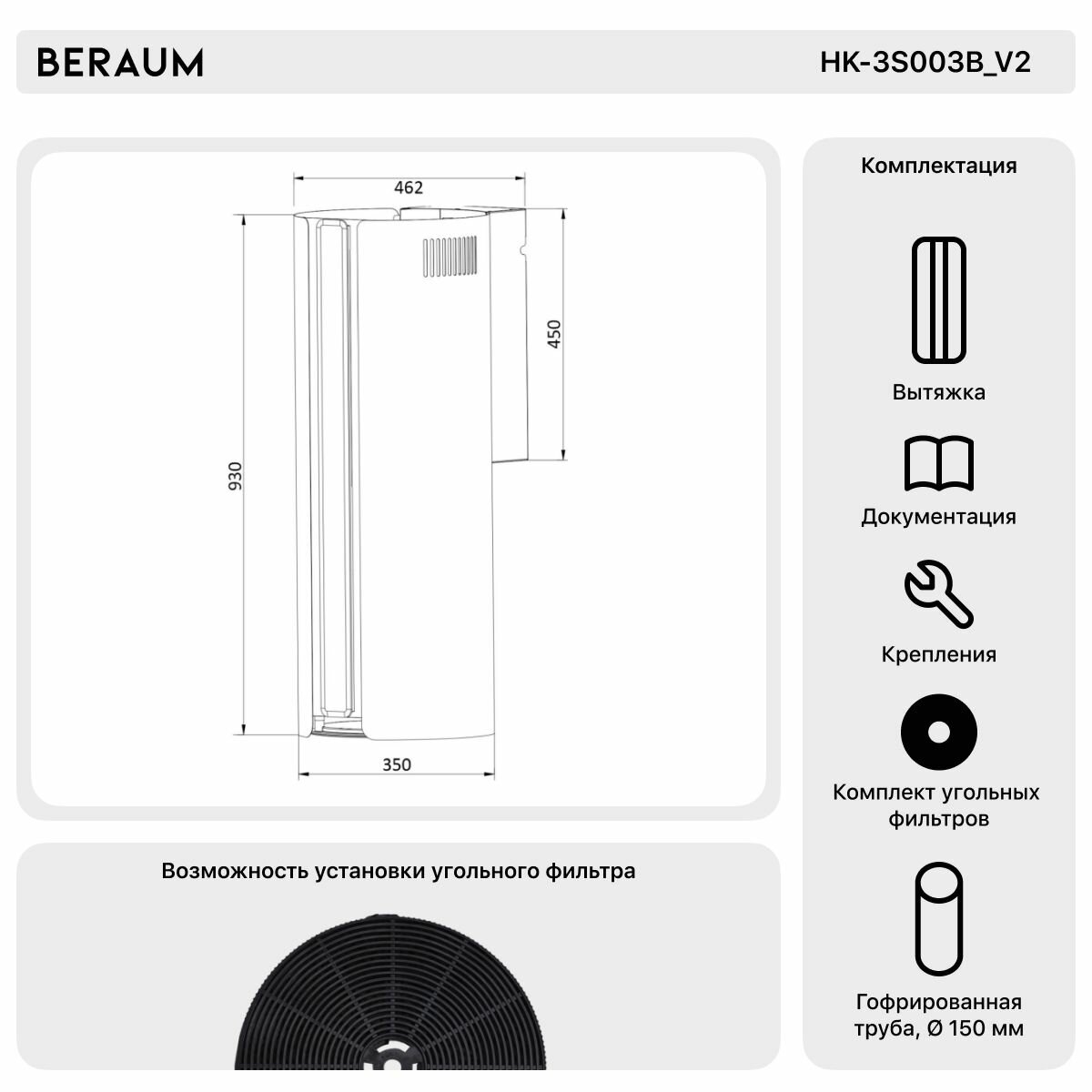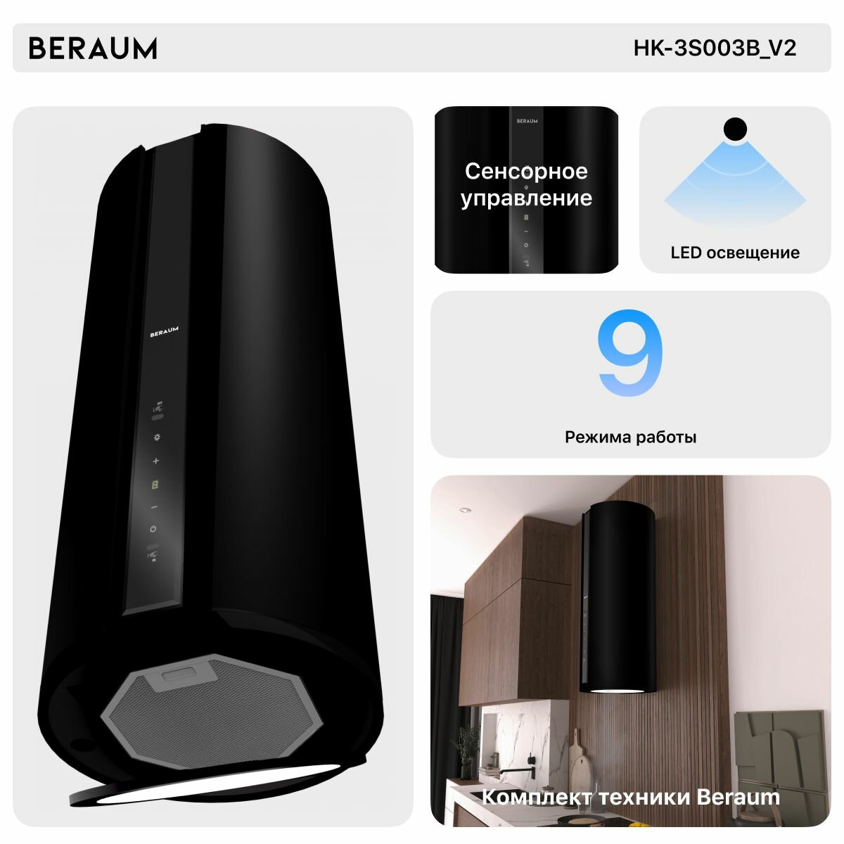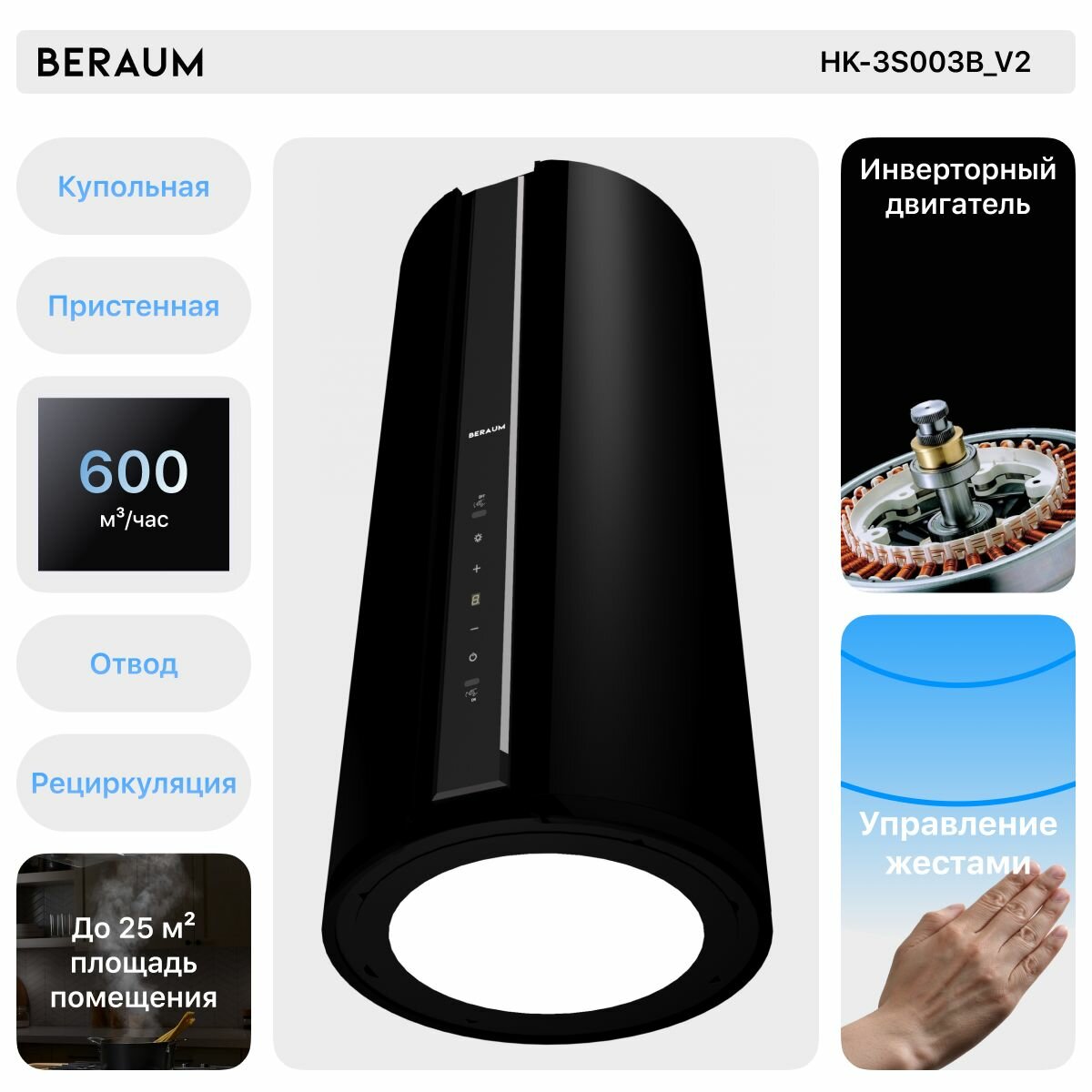 Вытяжка кухонная цилиндрическая сенсорная Beraum HK-3S003B_V2 c инверторным двигателем и управлением жестами информация: