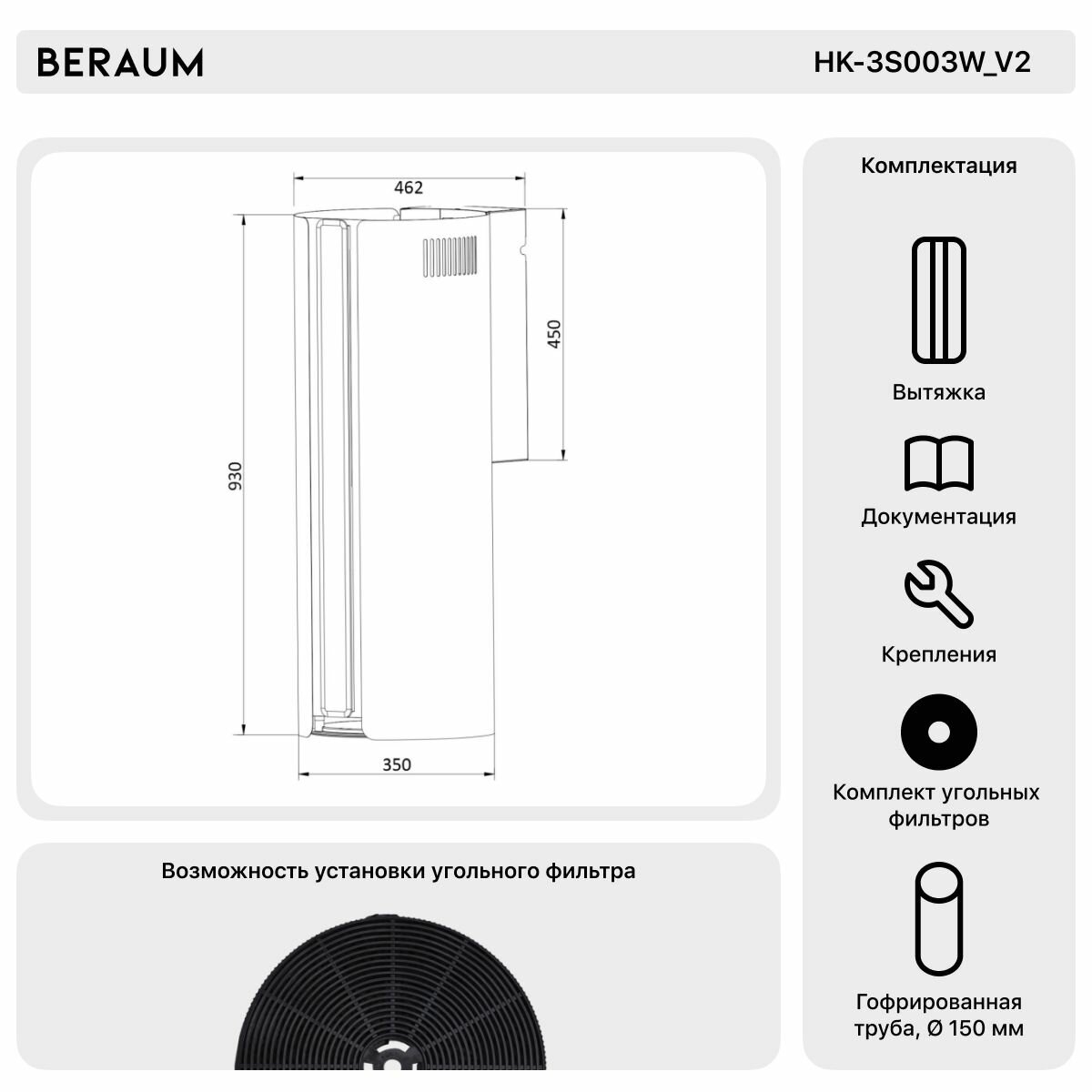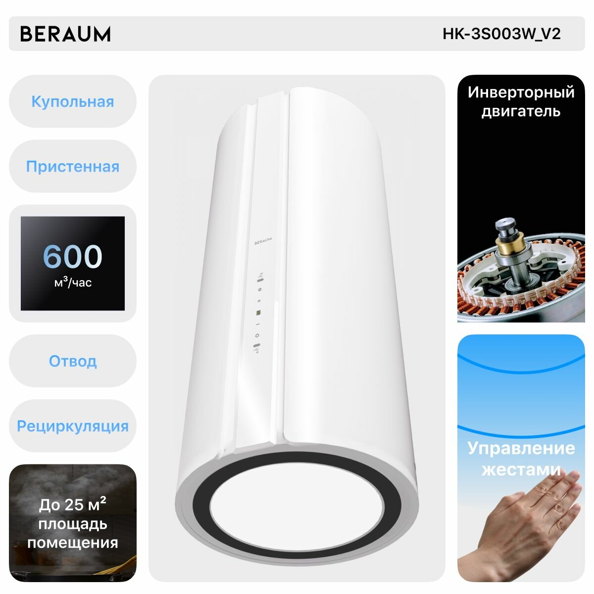 Вытяжка кухонная цилиндрическая сенсорная Beraum HK-3S003W_V2 c инверторным двигателем и управлением жестами информация: