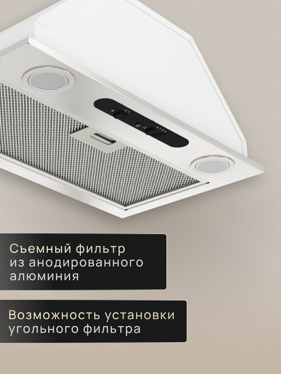 Вытяжка кухонная 50 см встраиваемая, 400 м3/ч, цвет белый ELIKOR встраиваемая, врезной блок, производительность - 400 м3/ч, управление ползунковое, 3 скорости, светодиодные лампы информация:
