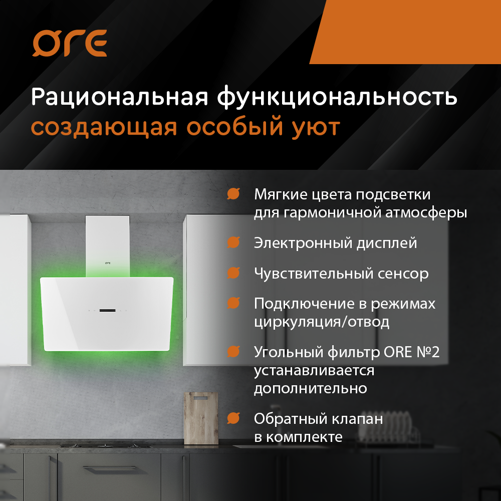 Вытяжка ORE Etne С 60 WHITE, цвет белый, ширина 60 см, 3 скорости информация: