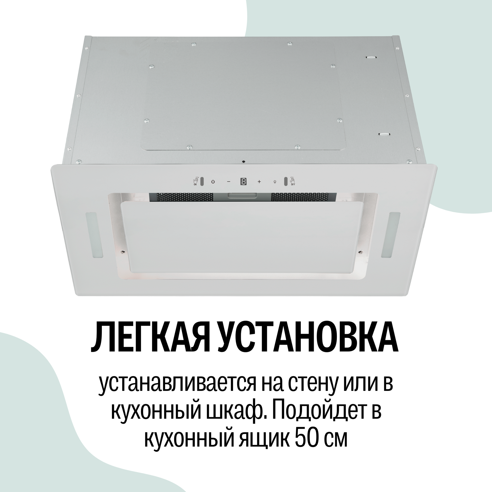 Вытяжка кухонная встраиваемая AMARI SLIDE 50 WHITE GLASS, со стеклянной выдвижной панелью, жировым фильтром, подсветкой