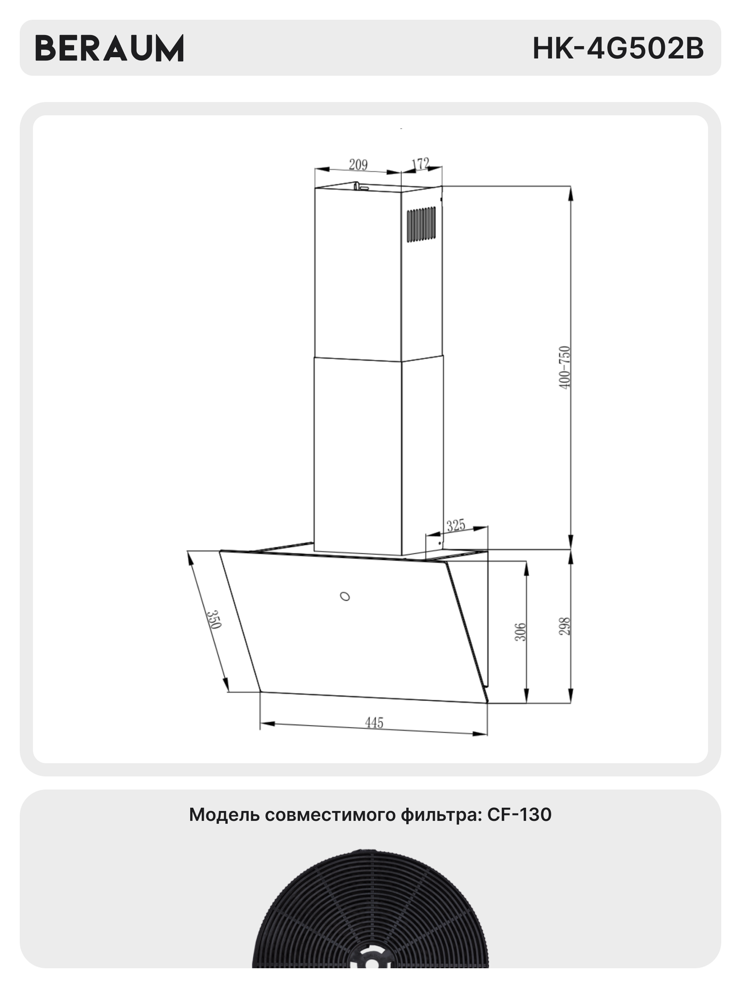 Вытяжка кухонная Beraum HK-4G502B, управление жестами, наклонная, черная информация: