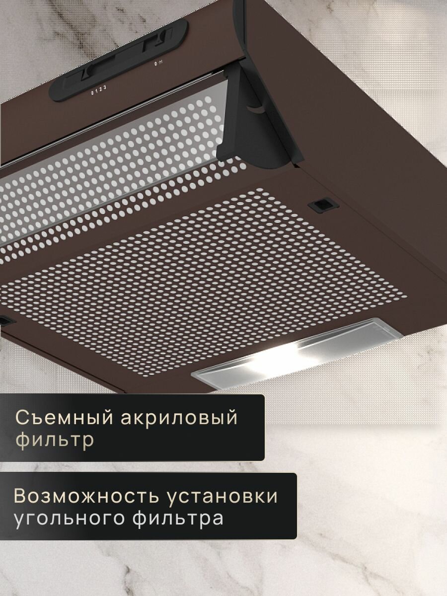 10 цен на Вытяжка кухонная 60 см встраиваемая, 290 м3/ч, цвет коричневый, ELIKOR Davoline 60П-290-П3Л, 3 скорости, управление ползунковое, лампа накаливания