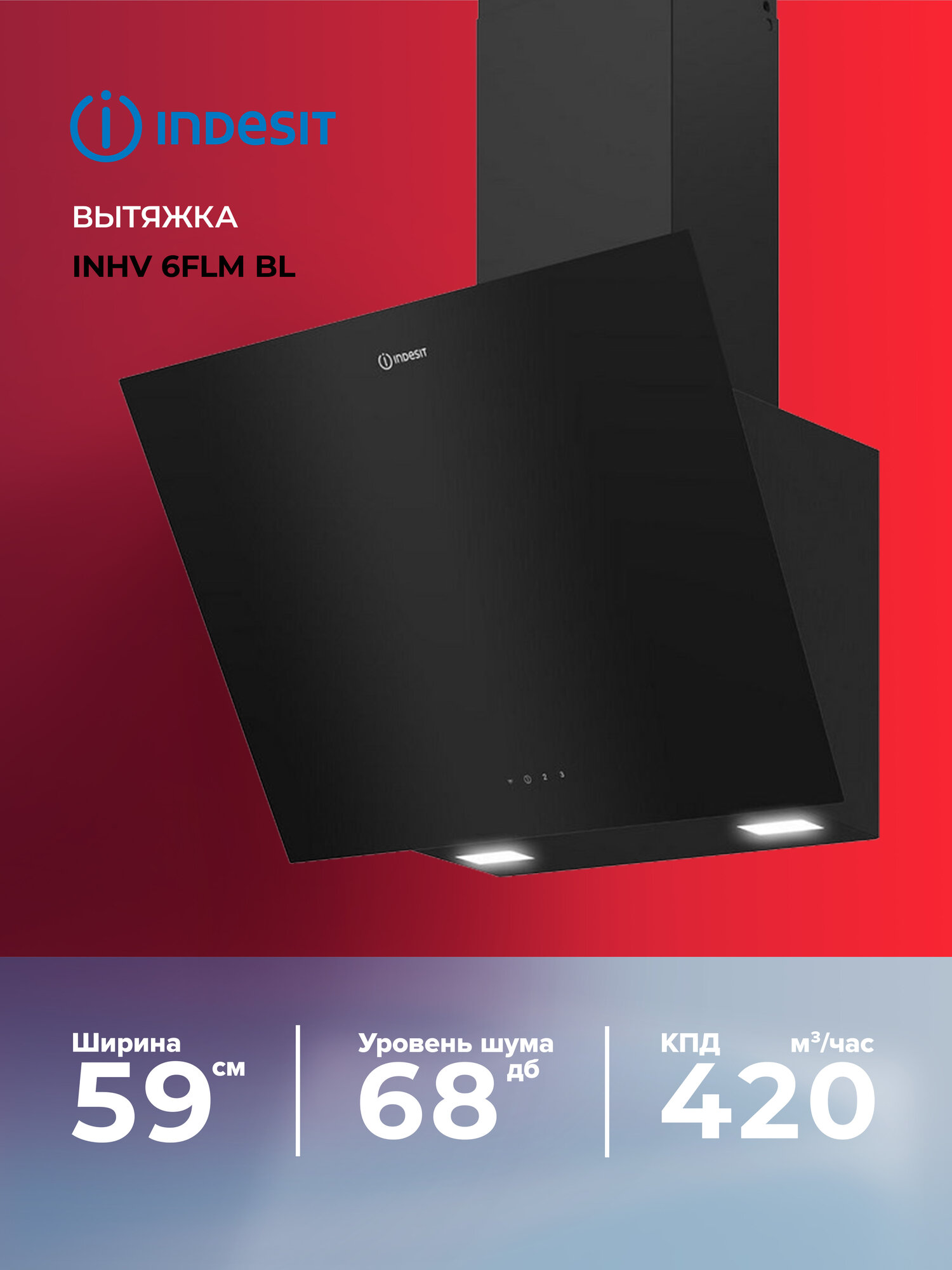Вытяжка Indesit INHV 6FLM BL, черный, (869890500010) информация: