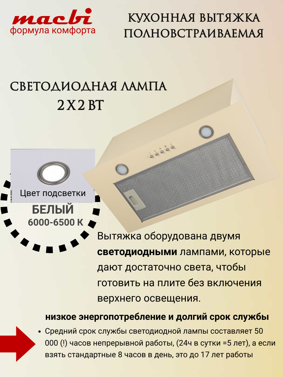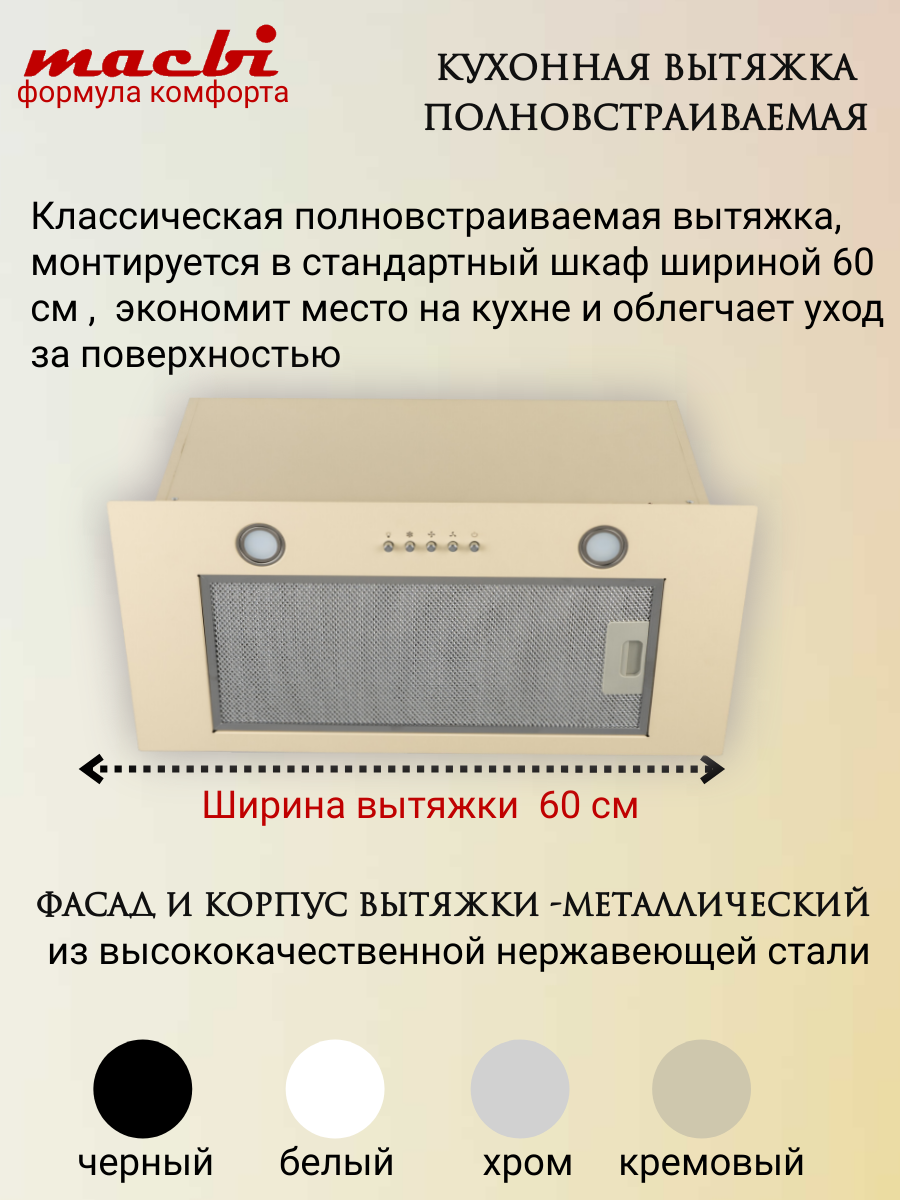 10 цен на Вытяжка кухонная MACBI B-BOX-60 (IVORY) слоновая кость, металл, 1200 м3/ч