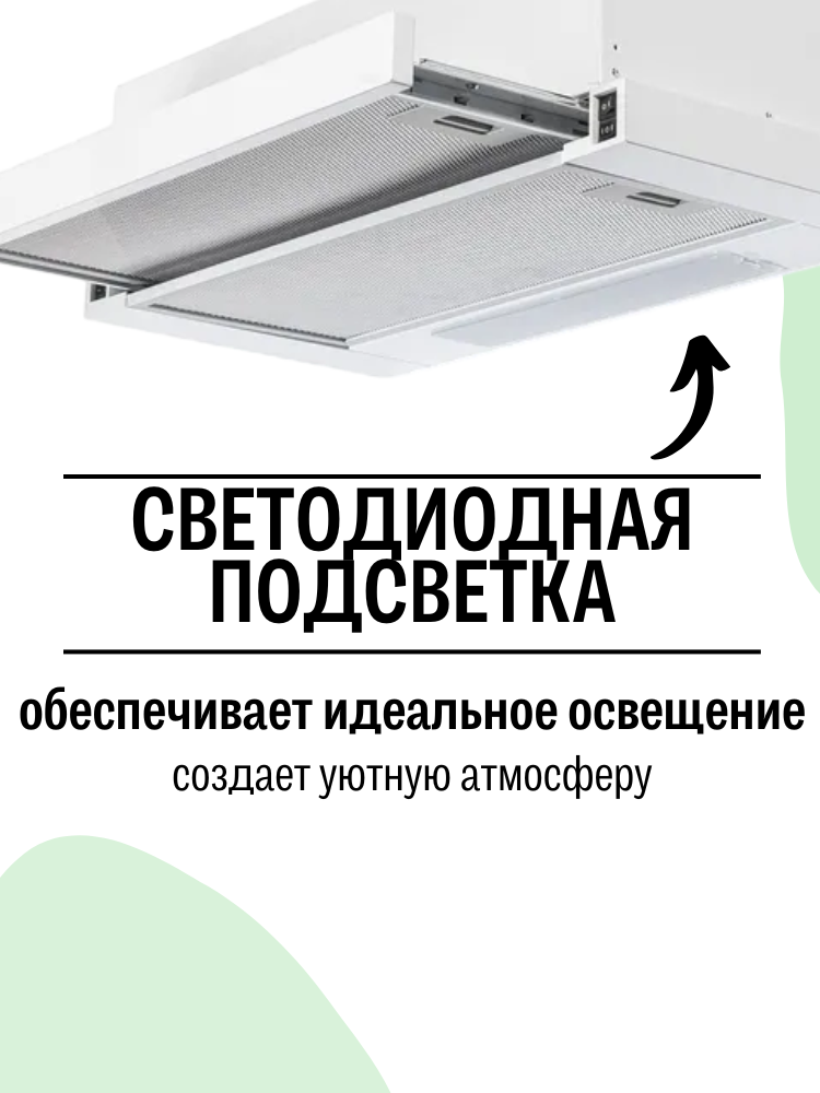 Вытяжка кухонная встраиваемая AMARI SLIDE 50 WHITE GLASS, со стеклянной выдвижной панелью, жировым фильтром, подсветкой информация: