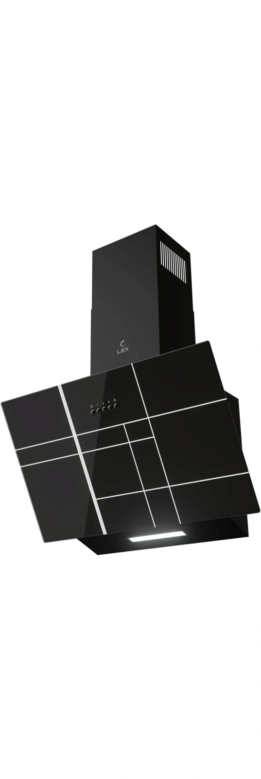Вытяжка кухонная наклонная LEX MOZA 600 R1 Black, 60 см, отделка окрашенная сталь, стекло, 3 скорости, кнопочное управление LED лампы.