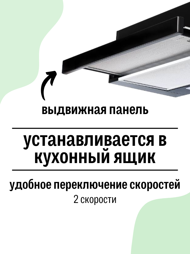 Вытяжка кухонная встраиваемая AMARI SLIDE 50 BLACK GLASS, со стеклянной выдвижной панелью, жировым фильтром, подсветкой информация: