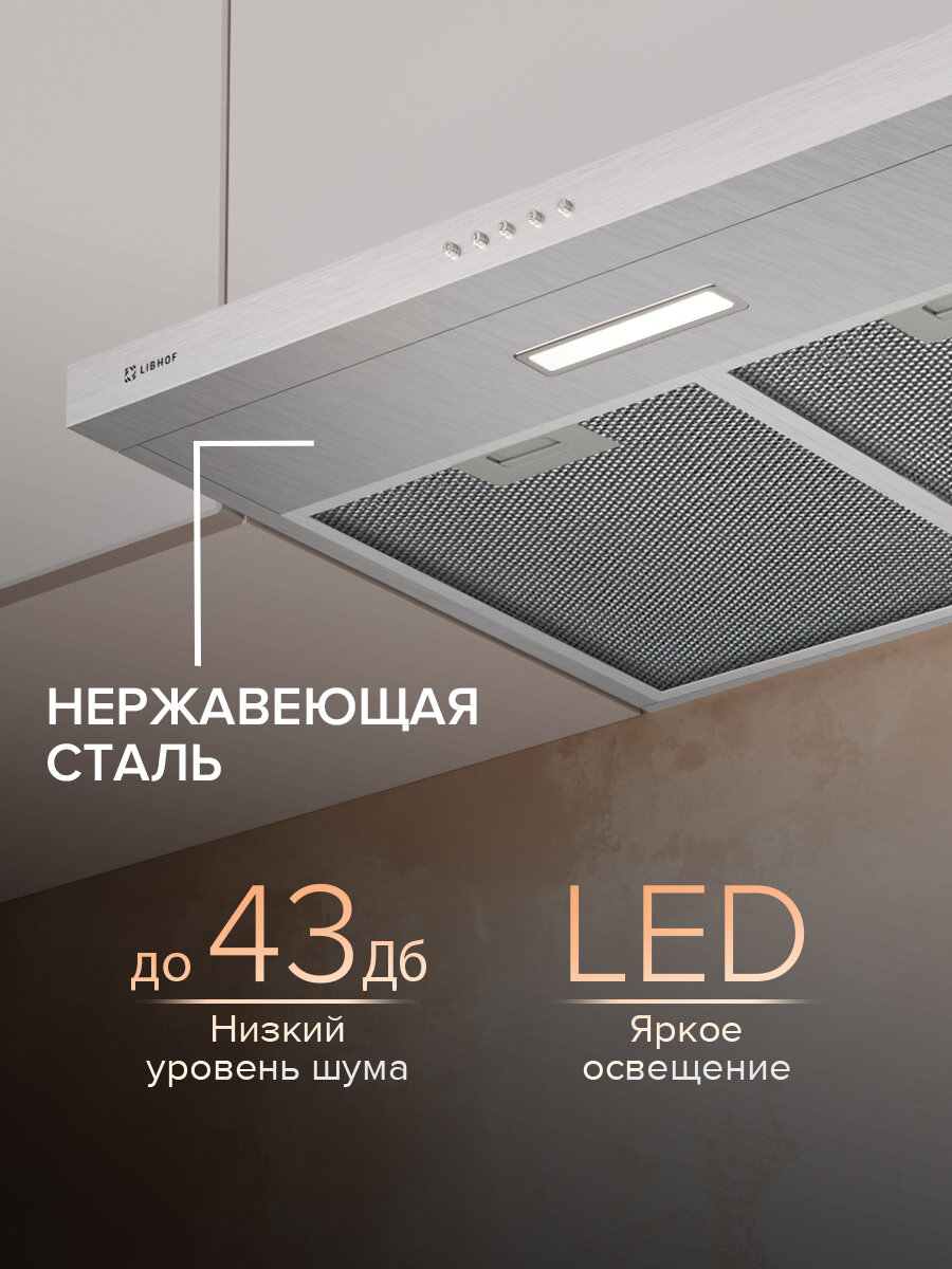 Кухонная вытяжка плоская Libhof LF-2360 silver / тройной алюминиевый жировой фильтр / механическое управление информация: