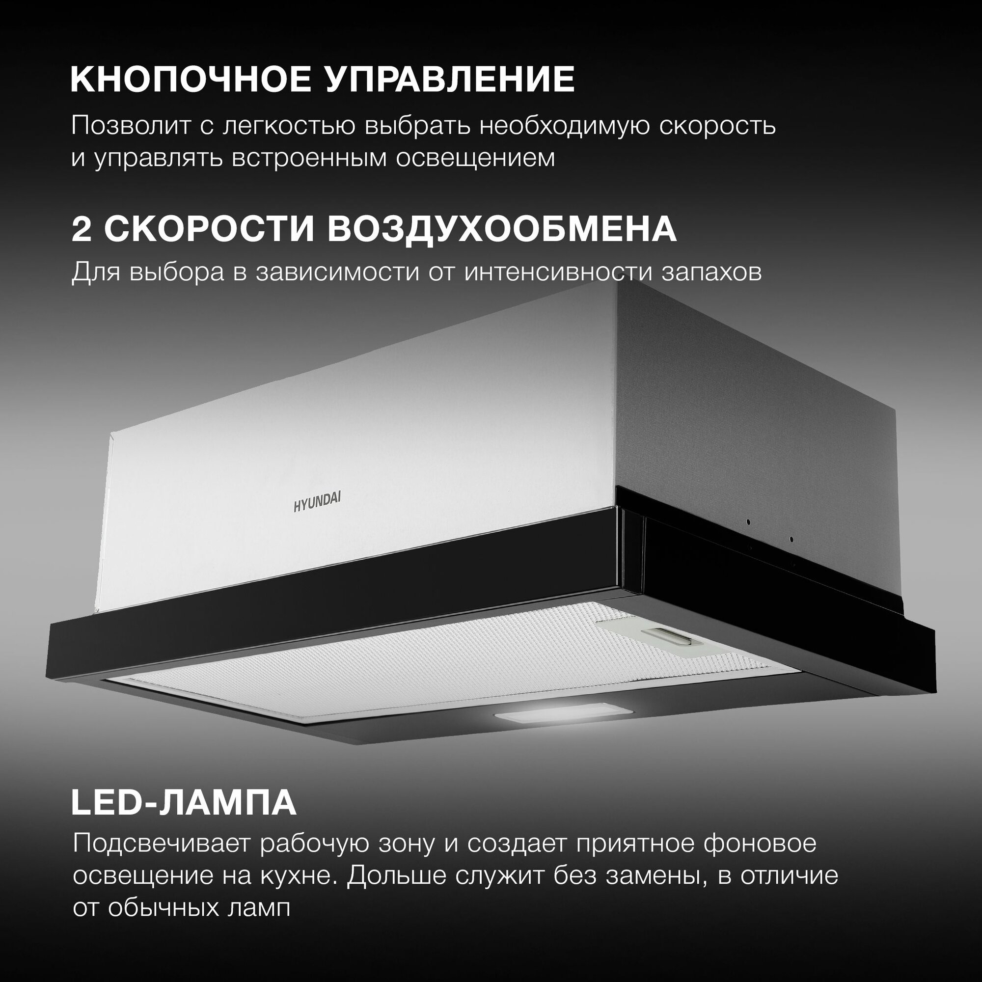 10 цен на Вытяжка встраиваемая Hyundai HBH 6235 BG черный управление: кнопочное