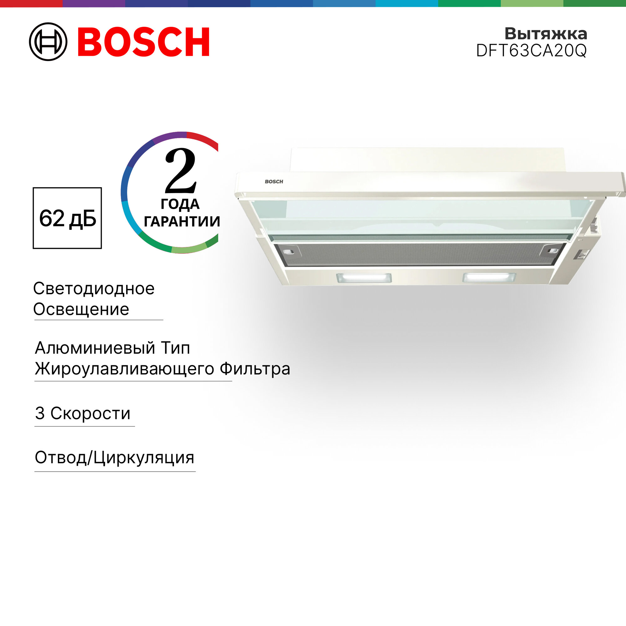 Отзывы на Вытяжка Bosch DFT63CA20Q,3 скорости, светодиодное освещение, ползунковый переключатель, механическое управление