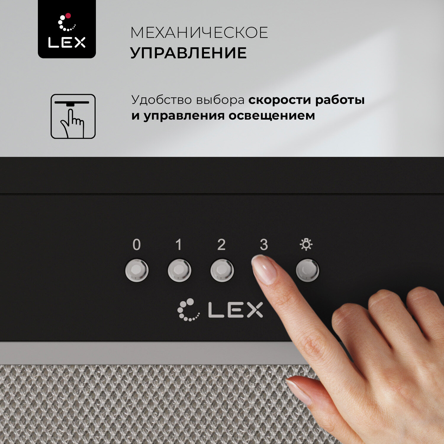Вытяжка кухонная встраиваемая LEX HYPER 600 Inverter BL, отделка окрашенная сталь, 3 скорости, кнопочное управление, инверторный мотор. информация: