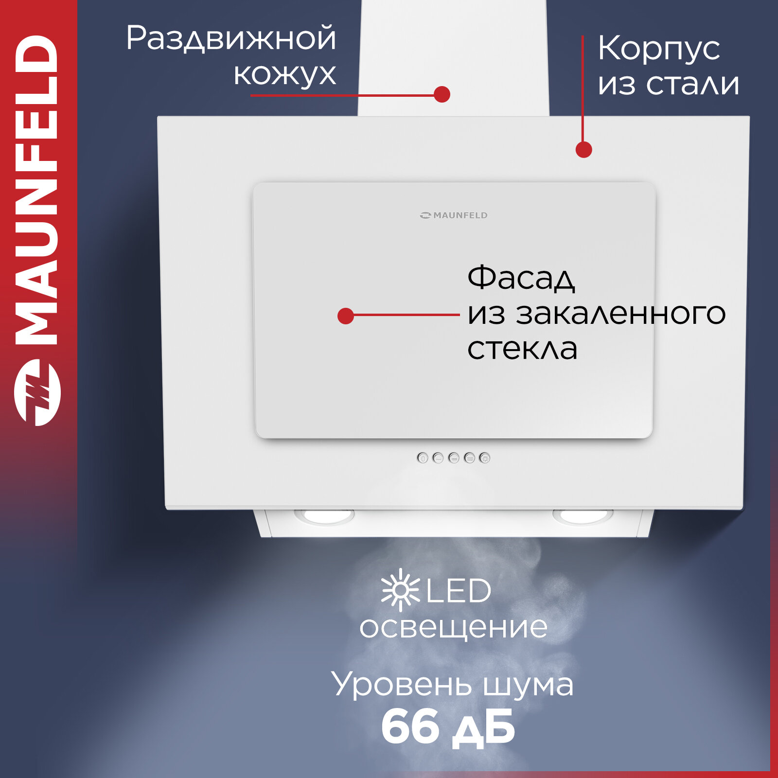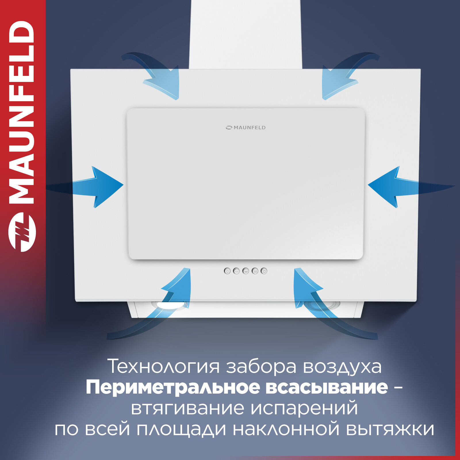 Кухонная вытяжка MAUNFELD Tower 60 белый, наклонная, 700 м3/ч, 3 скорости, LED подсветка, информация: