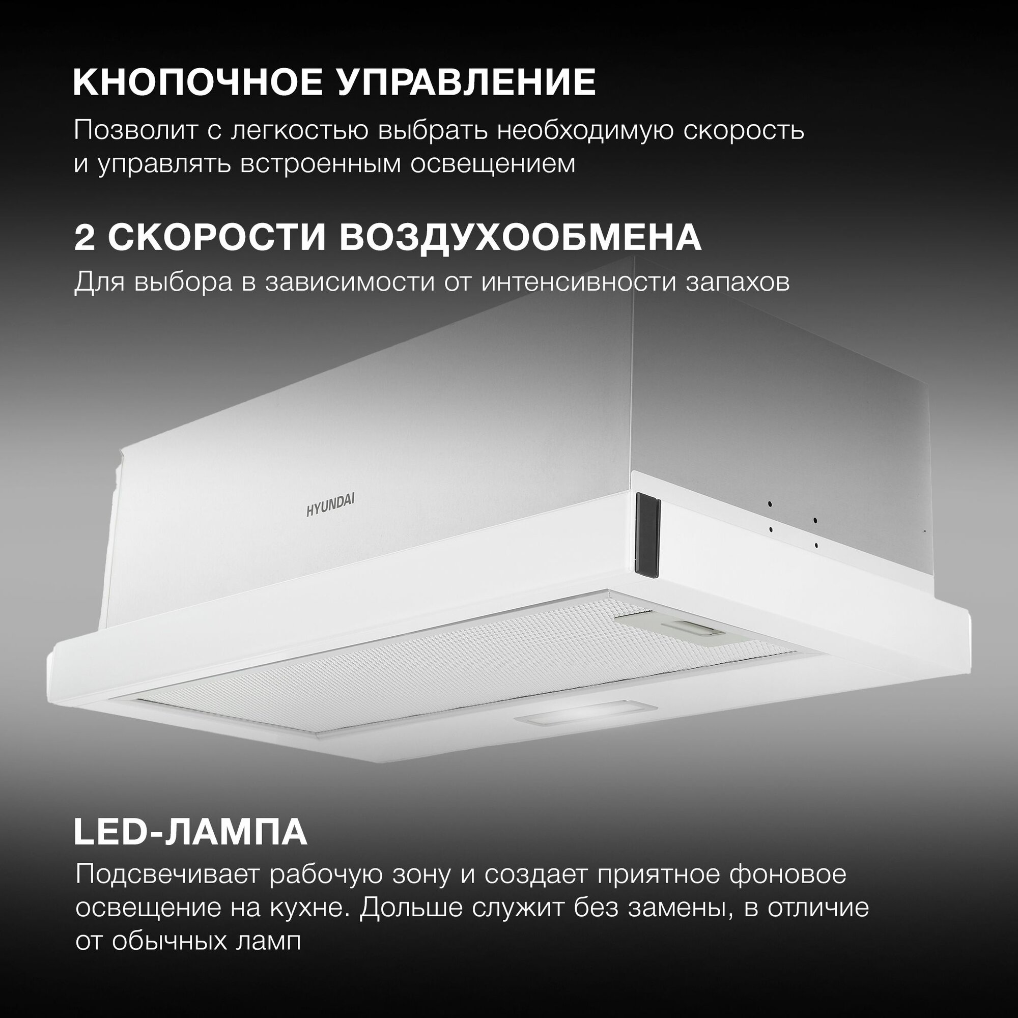 Отзывы на Вытяжка встраиваемая Hyundai HBH 6230 W белый управление: кнопочное