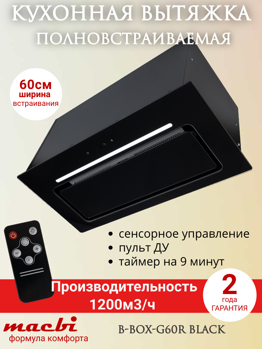 Встраиваемая вытяжка MACBI YANB-BoxG60R, сенсорная панель, пульт, черное стекло информация: