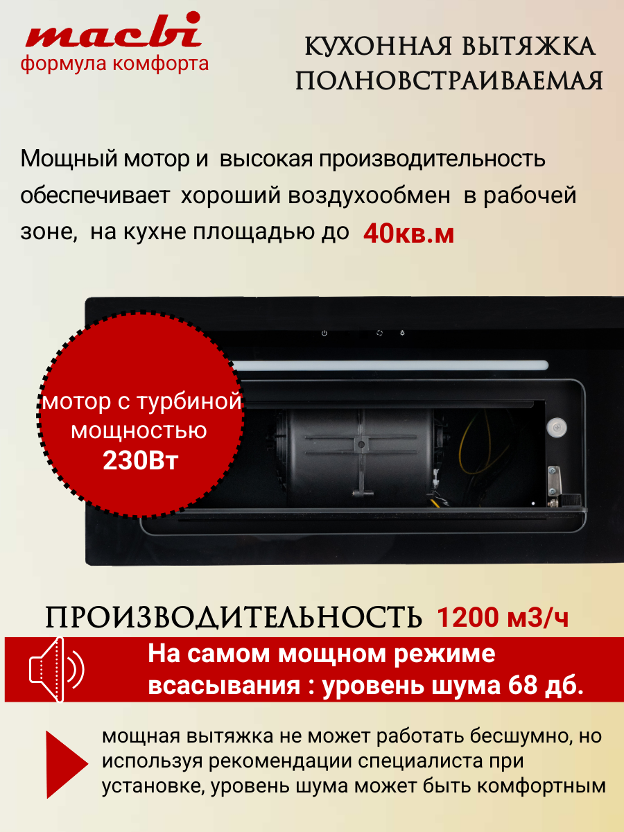 Вытяжка кухонная MACBI встраиваемая MW60TL 1200м3/ч Черная (управление жестами)
