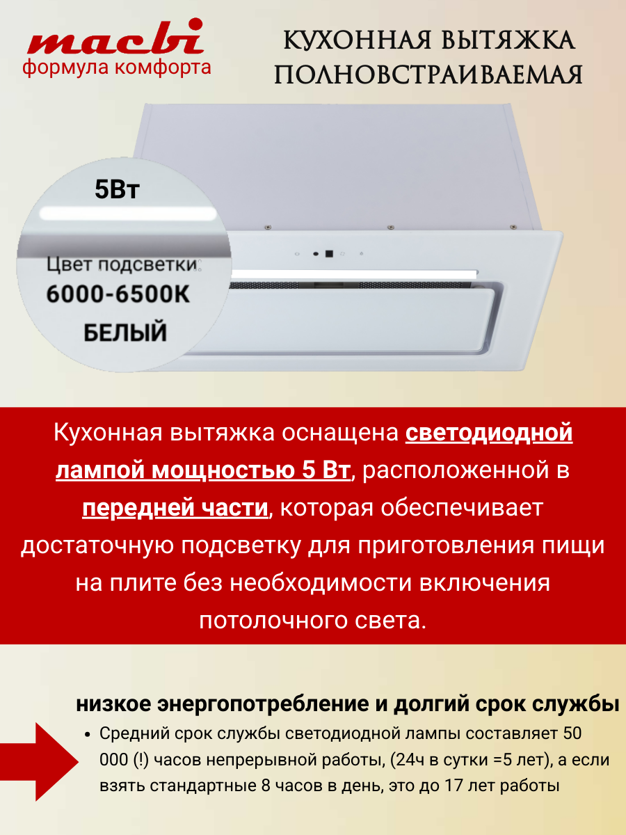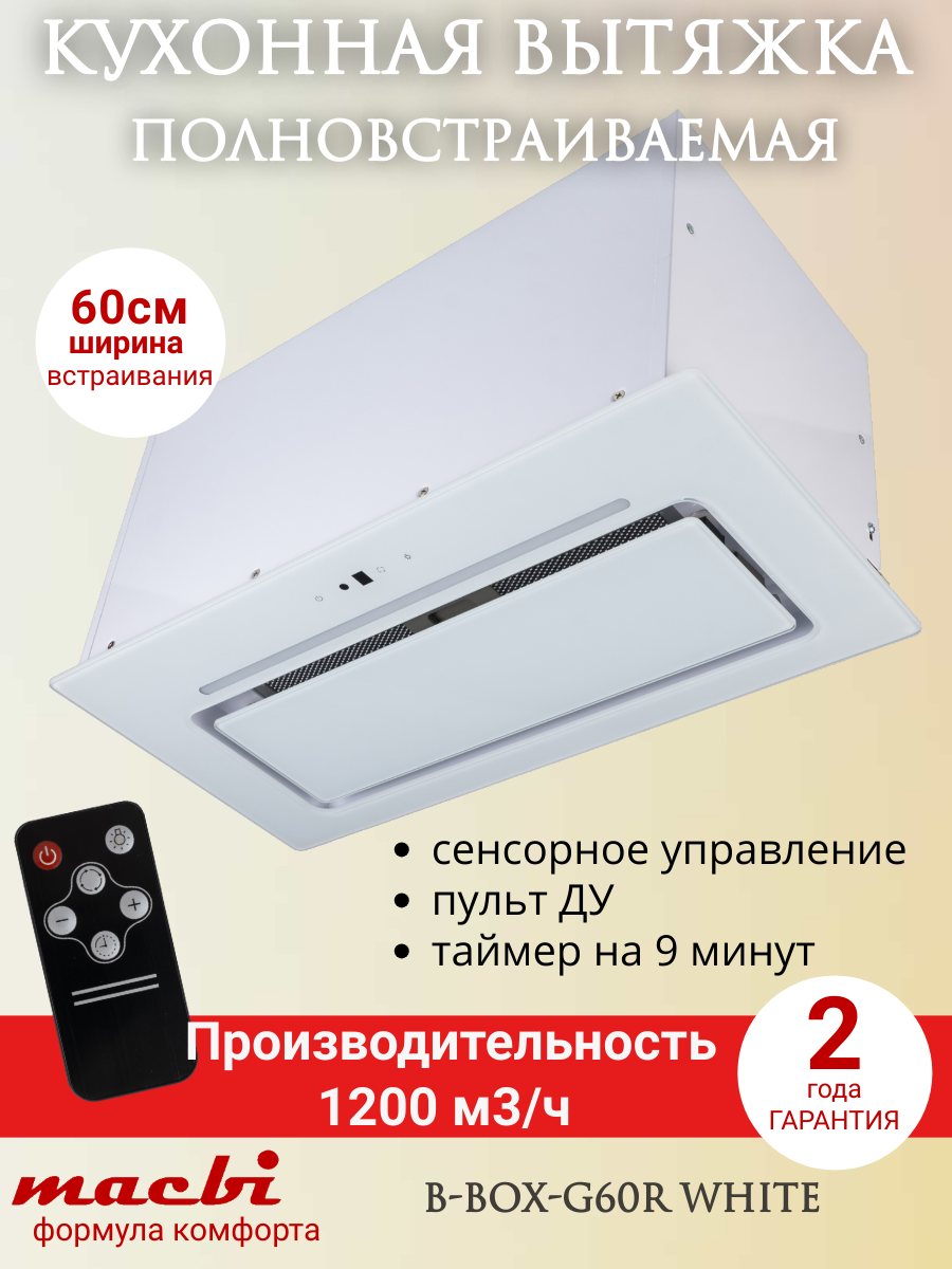 Вытяжка MACBI "YANB-Box", полновстраиваемая, пульт ДУ, белое стекло информация:
