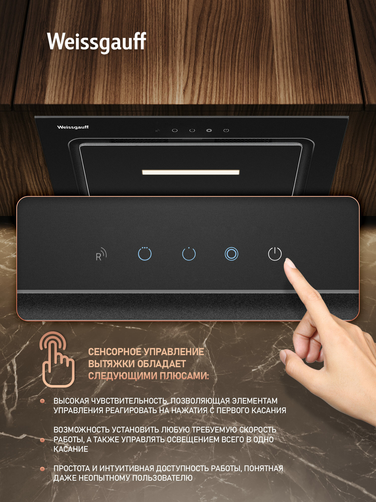 Кухонная встраиваемая вытяжка Weissgauff Aura 456 Touch Black Glass информация: