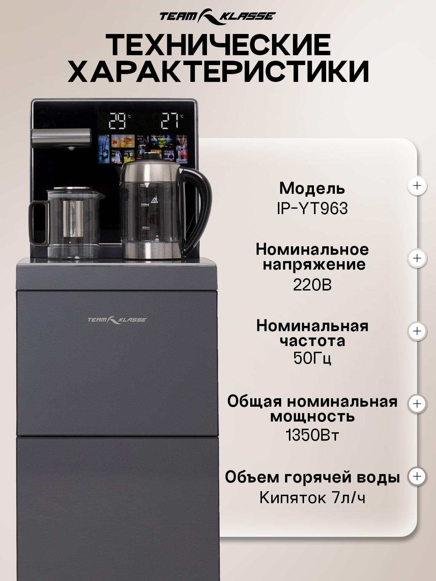 Кулер для воды напольный "Team Klasse" IP-YT963 с нагревом, серый информация: