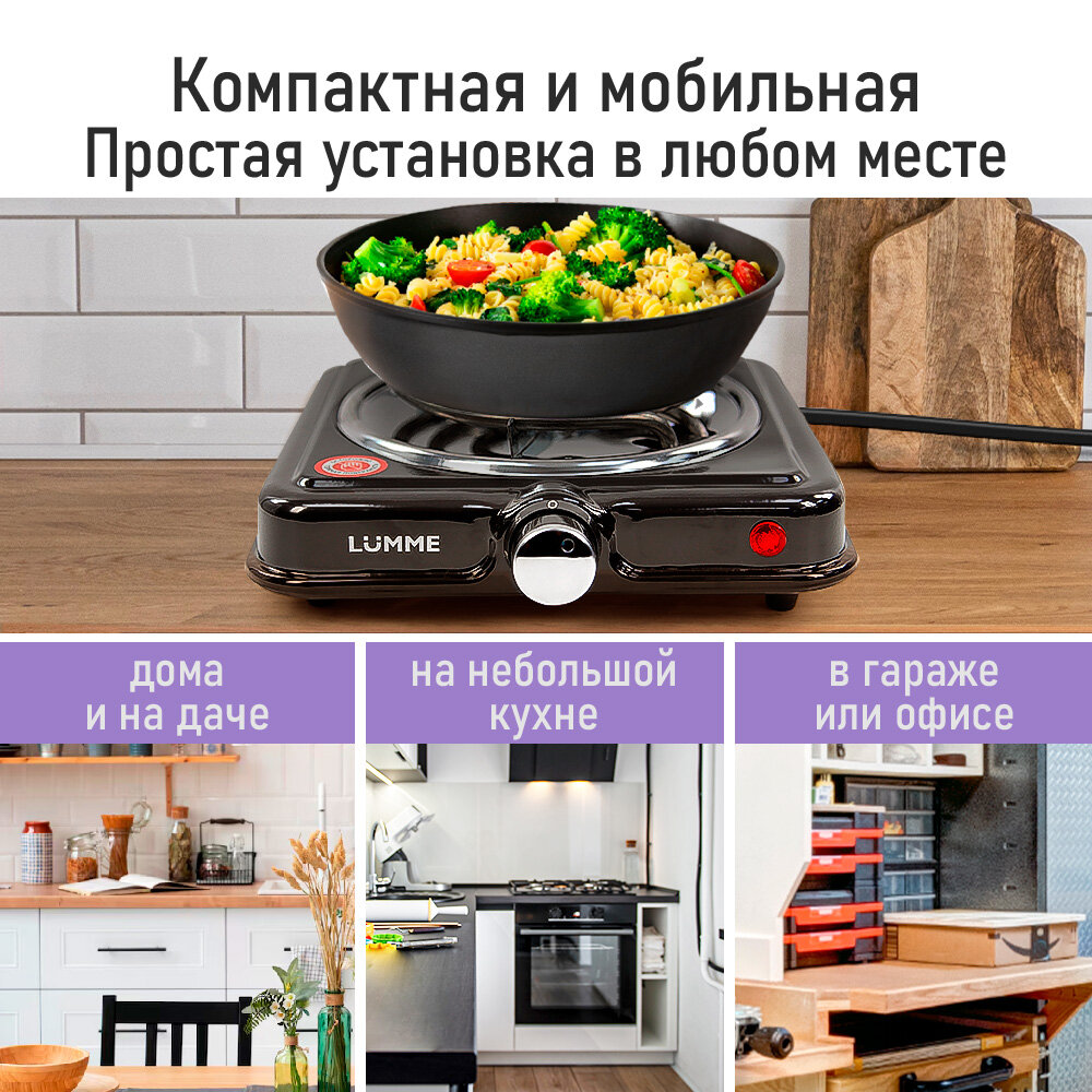 Отзывы на Электроплитка LUMME LU-HP3703, черная, нержавеющая сталь, 13см