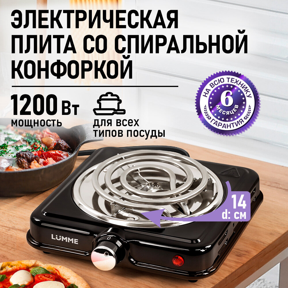 Электроплитка LUMME LU-HP3703, черная, нержавеющая сталь, 13см информация: