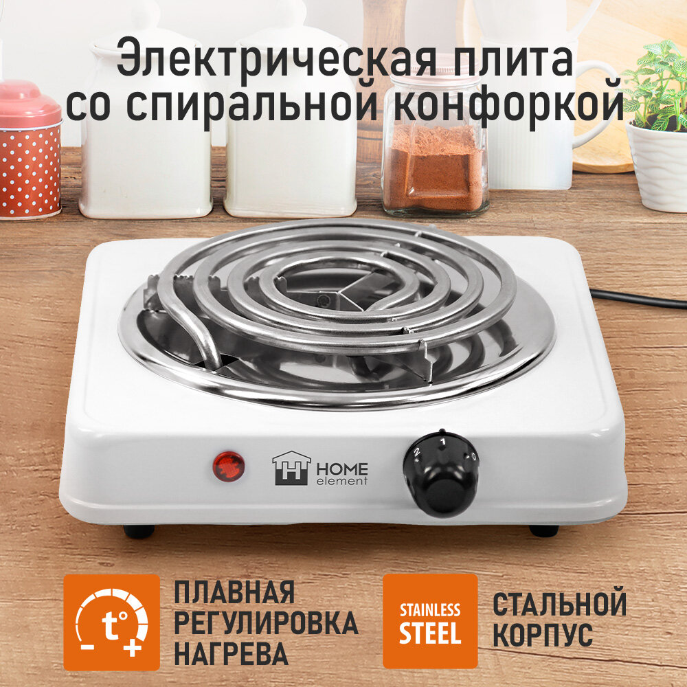 Отзывы на Электрическая плитка HOME ELEMENT HE-HP719B, 2000Вт, нержавеющая сталь, белая