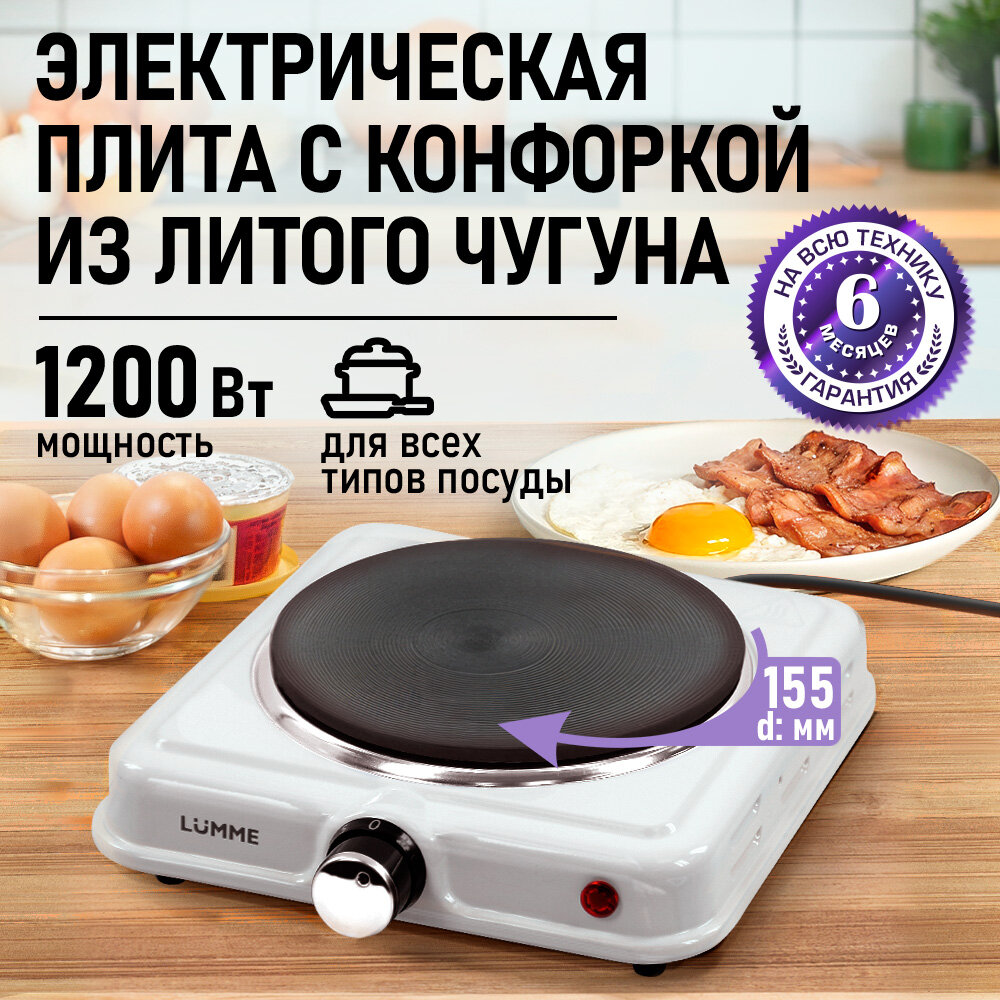 Отзывы на Электроплитка LUMME LU-HP3704A, белая, чугунная, 1200Вт, 1конфорка, 15.5см, настол