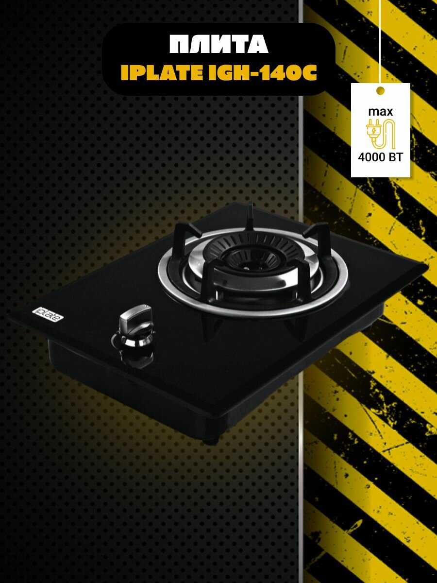 Газовая плита Iplate IGH-140, закаленное стекло, настольная / встраиваемая информация: