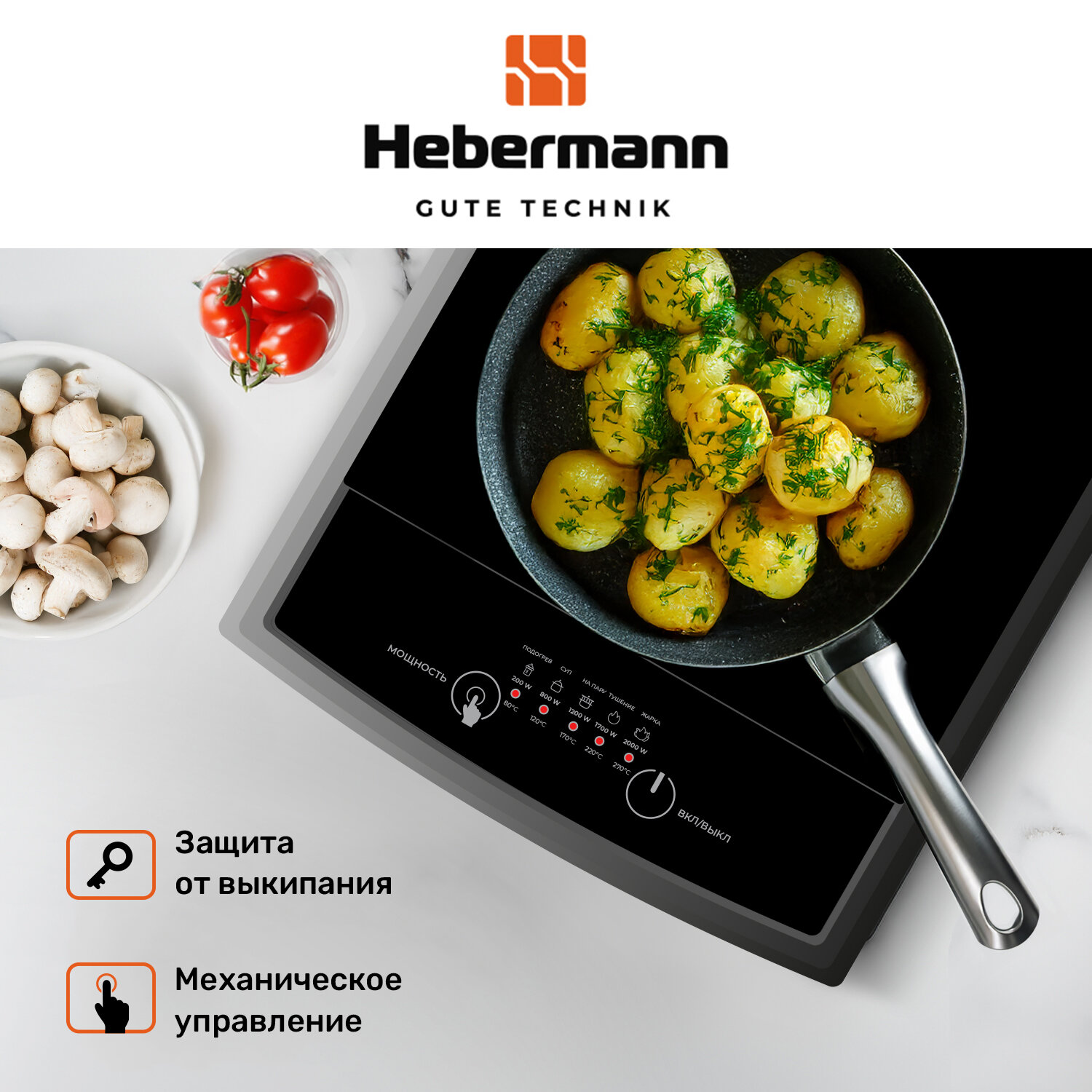 10 цен на Плитка индукционная настольная электрическая Hebermann HBIC 1101. 2000 Вт, 5 режимов, электронное управление.
