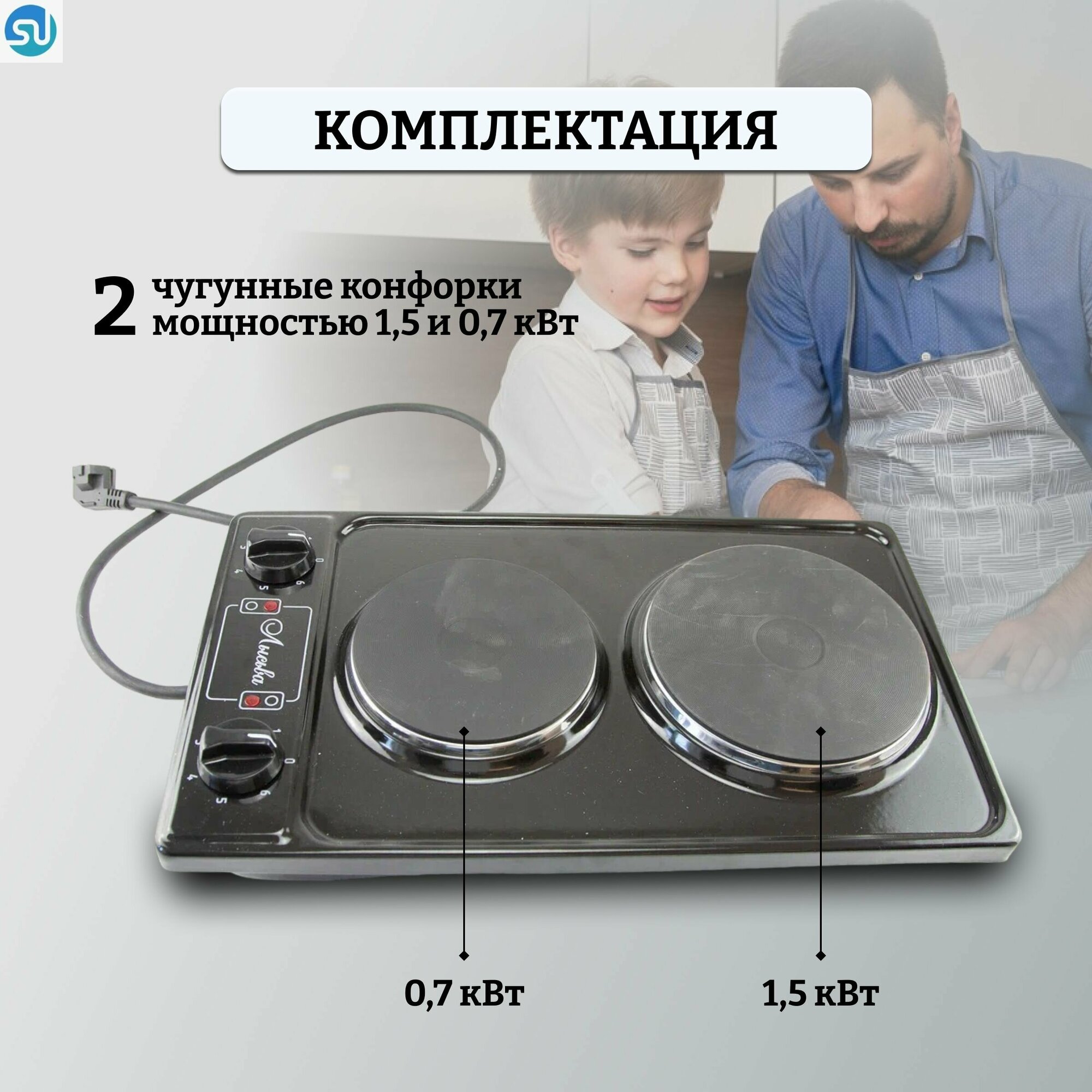 | Общее количество конфорок | 2 |