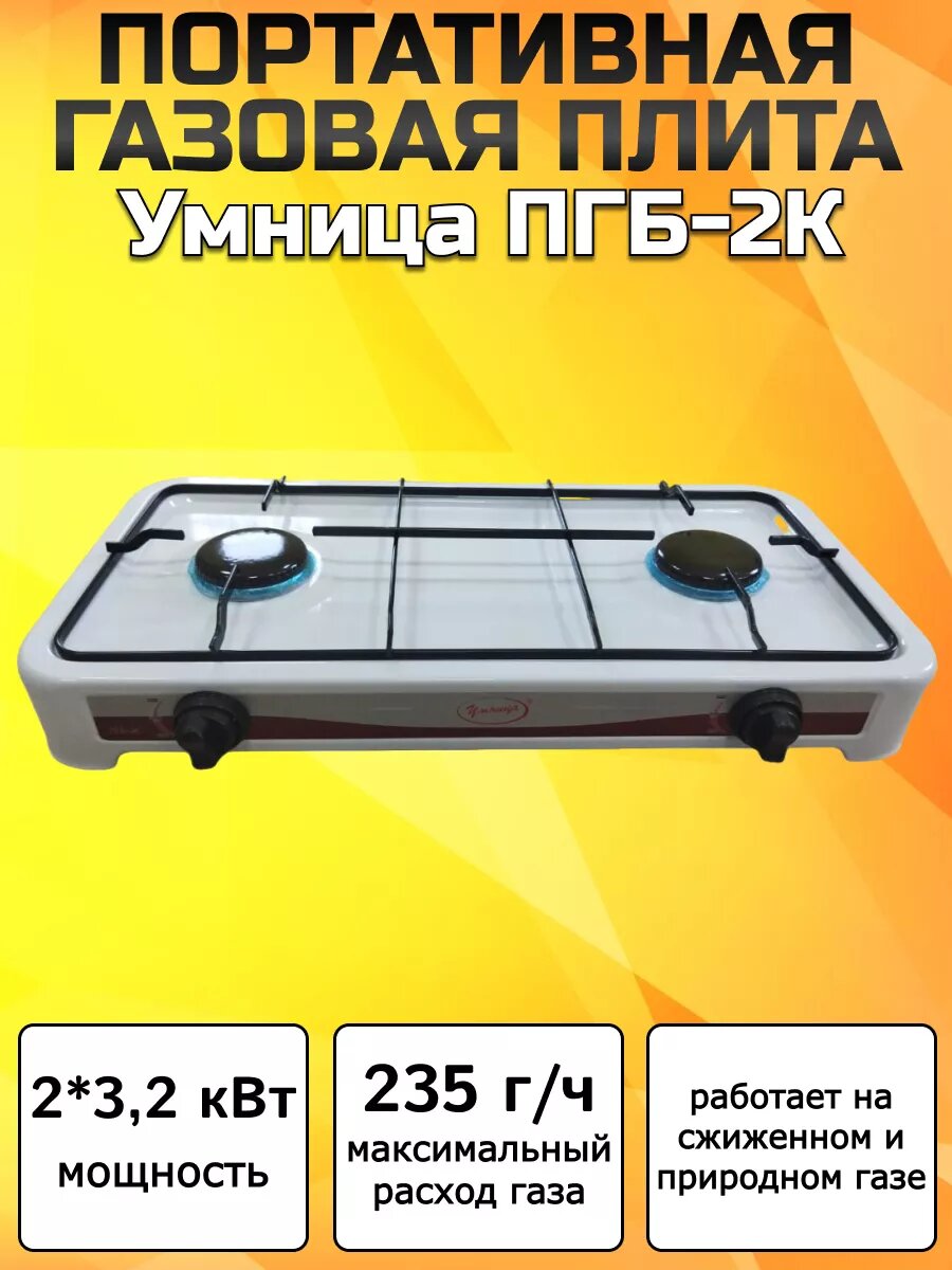 10 цен на Плита газовая Умница ПГБ-2К | настольная / 2 конфорки / цвет белый