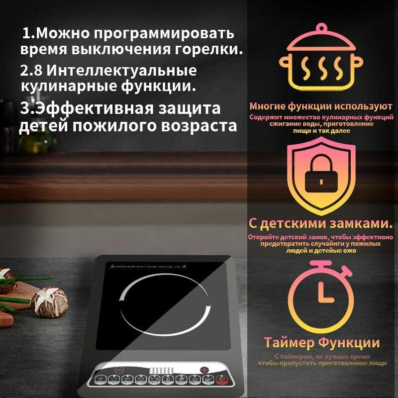 Отзывы на Электрическая индукционная безимпульсная плитка настольная 1 конфорка, 2000 Вт